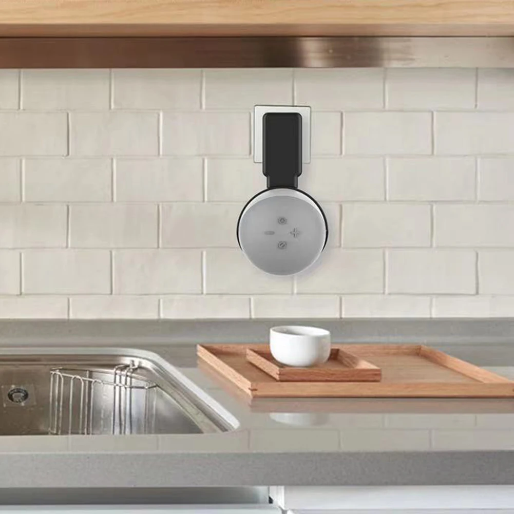 2.Sin pérdida de sonido:¿Si le preocupa que instalar el altavoz en el soporte de pared del tomacorriente debilitará la claridad y el volumen del sonido del altavoz?Este tipo de montaje en pared no obstruye el micrófono ni los altavoces, y el diseño de base hueca favorece la disipación del calor.