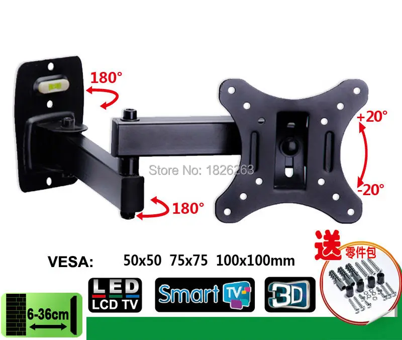 Comprar Soporte de pared para Monitor LCD LED de 10 a 26 pulgadas, base giratoria de movimiento completo, brazo oscilante, carga VESA de 50/75/100mm, 10kg