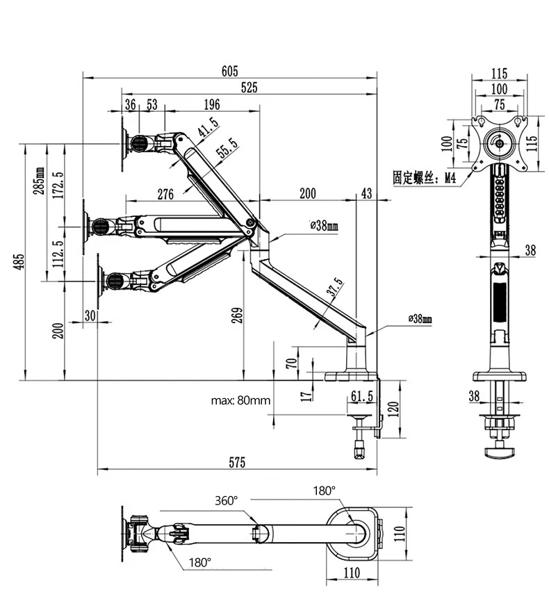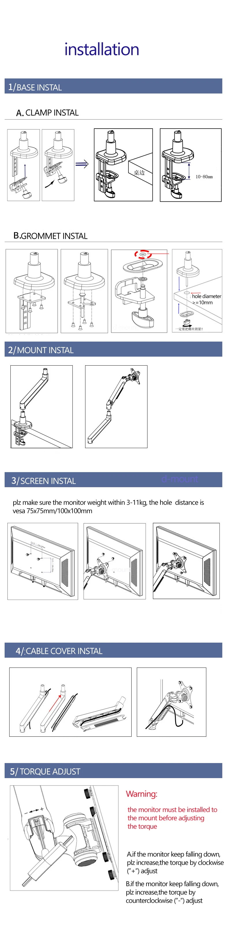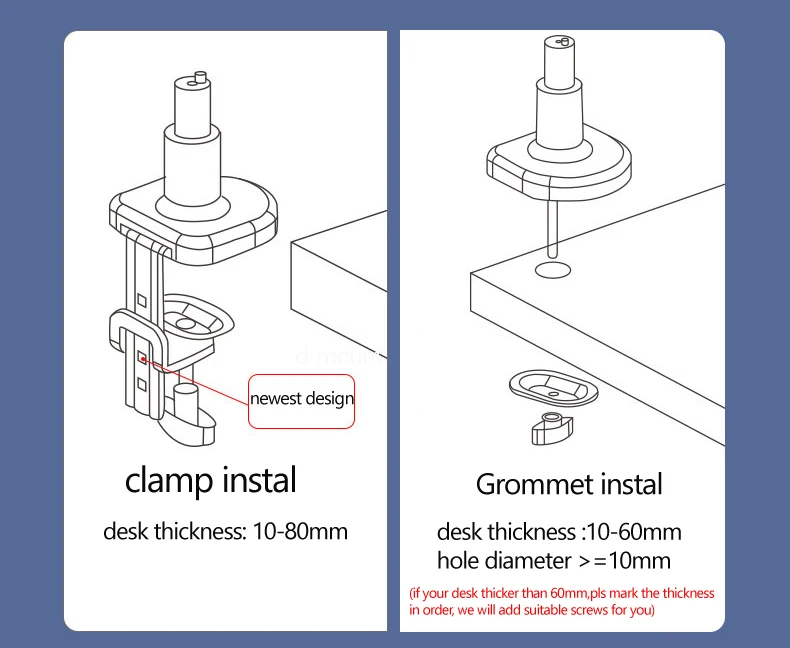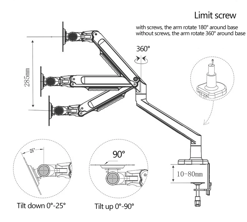 Sujeción de escritorio: Grosor del escritorio dentro de 10-80mm