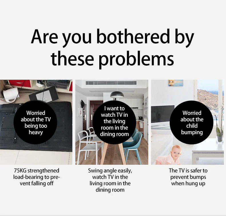 7.Adecuado para GELL, Sony, Xiaomi, LG, Hisense, Samsung, Philips, Sharp, Haier, Toshiba, Panasonic, etc., la mayoría de las marcas de televisores (excepto televisores con orificio VESA especiales)