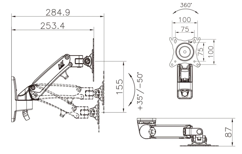 NB F120 17-27 "Resorte de gas Full Motion TV Soporte de pared Soporte de monitor LCD Soporte de brazo de aluminio
