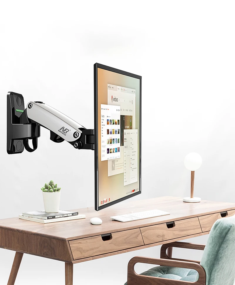 Comprar Soporte de pared NB F120 para Monitor LCD, brazo de aluminio, resorte de Gas, movimiento completo, color plata y negro, 17-27"