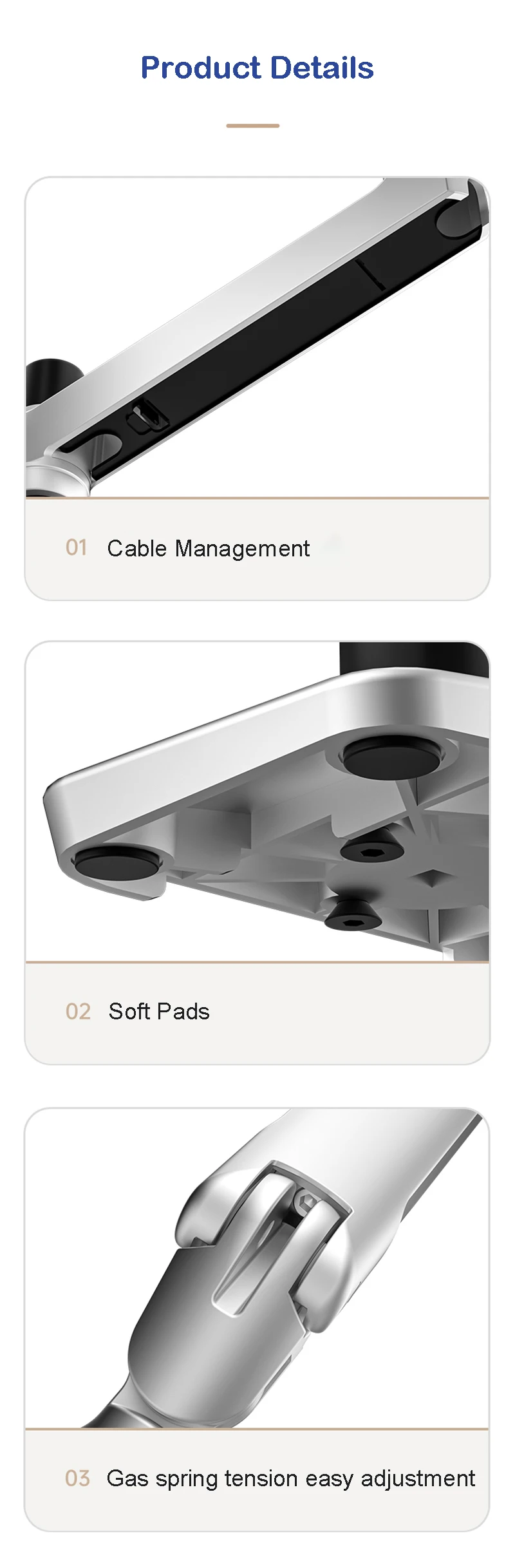 Resorte mecánico Soporte para computadora portátil de montaje en pared de brazo ultra largo de 3 secciones