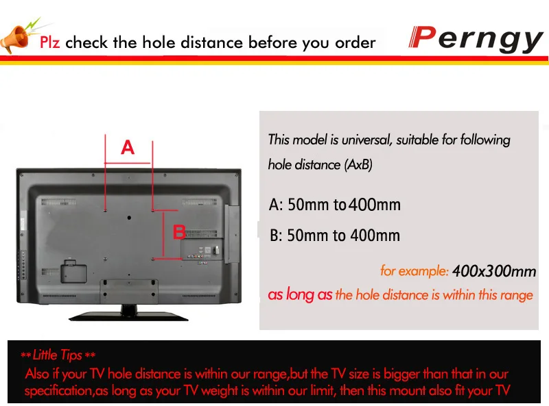 Ajuste el orificio de TV de 75x75mm a 420X400mm