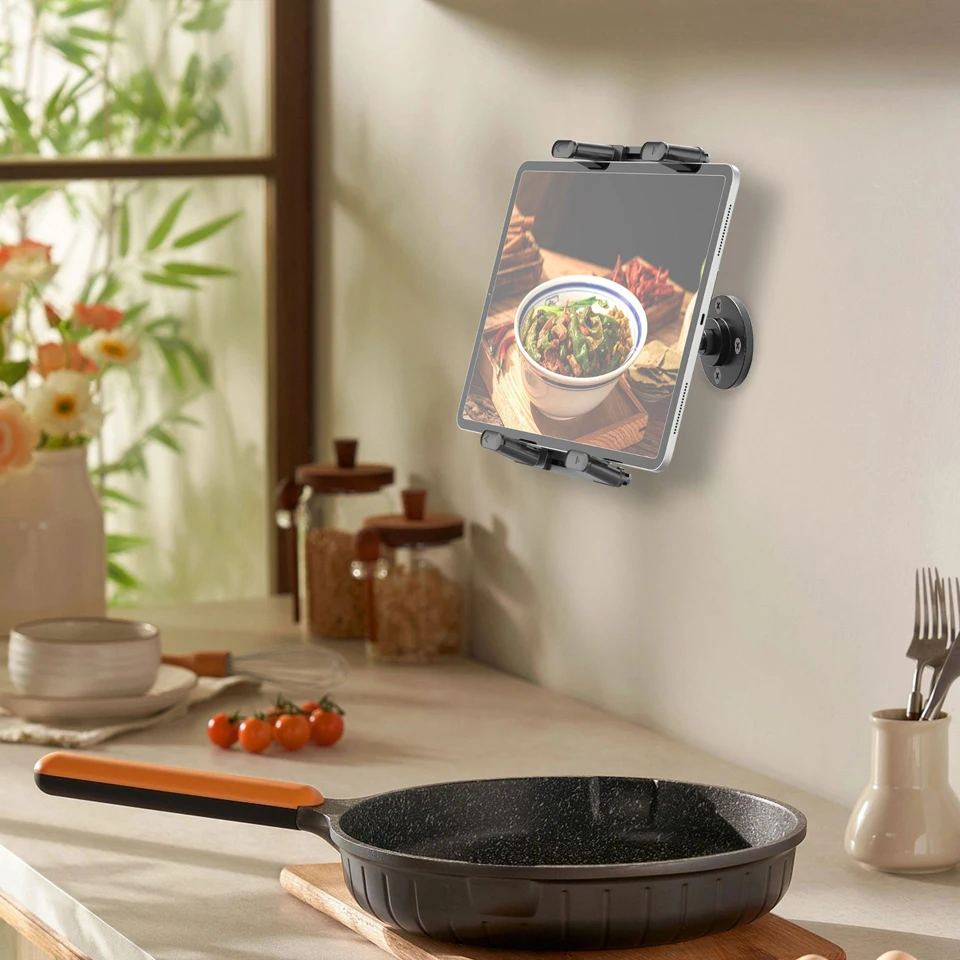 Soporte de pared para tableta, 360° Soporte giratorio para tableta, base resistente, cocina