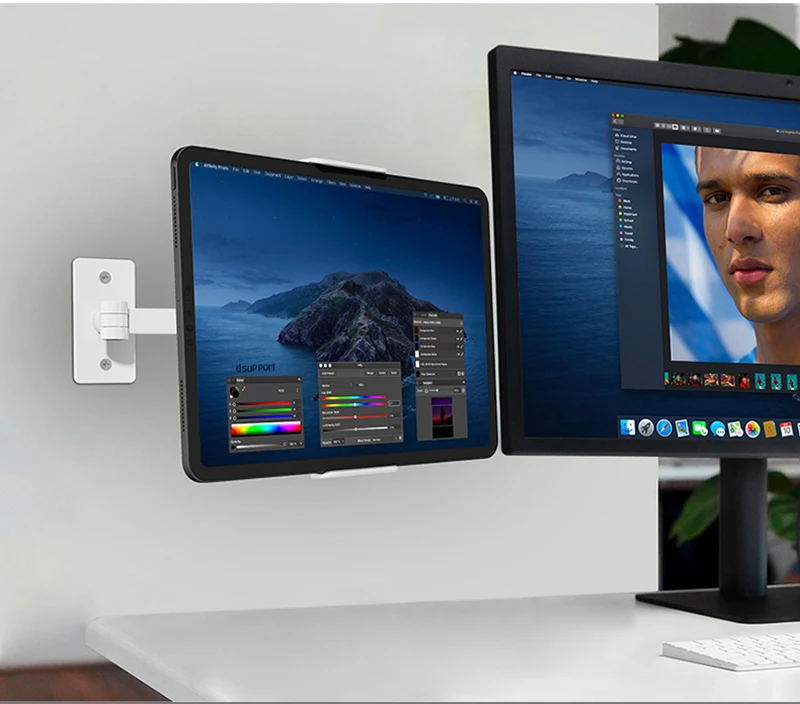 Rotación de múltiples ángulos, pantalla ajustable de 360 grados; Brazo ajustable de 180 grados; base ajustable de 90 grados.