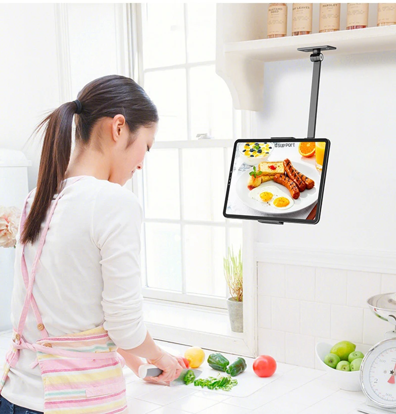 Comprar Soporte de pared para tableta, montaje de techo para cocina, plegable, ajustable, de 5 a 13 pulgadas, para teléfono, tableta y ipad