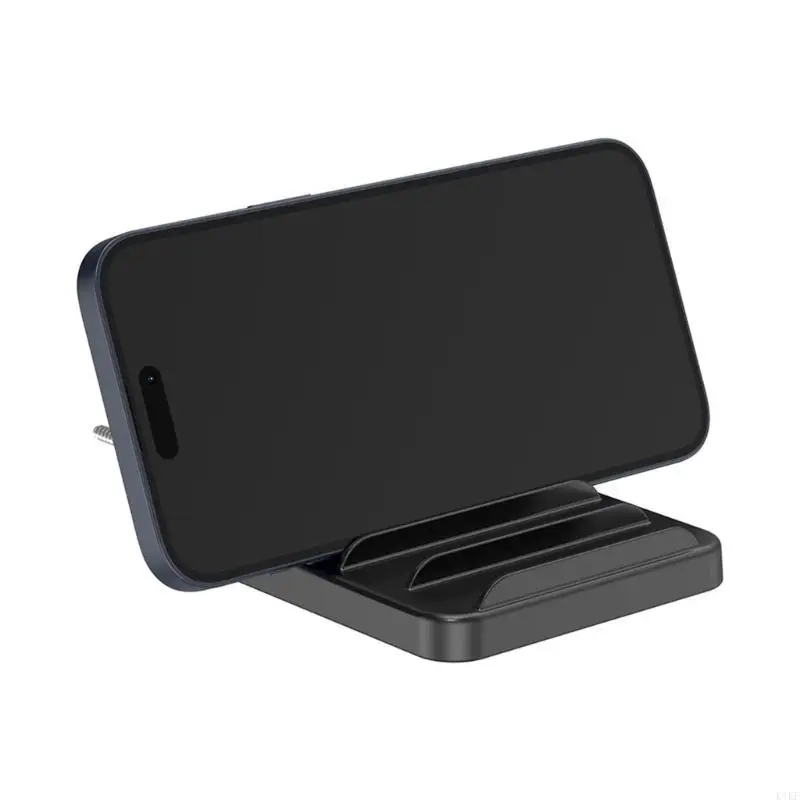 Con posicionamiento y tamaño ajustables, este soporte se adapta a la mayoría de tabletas y teléfonos inteligentes, ofreciendo dos opciones de instalación adhesivas para superficies lisas y tornillos para paredes rugosas.
