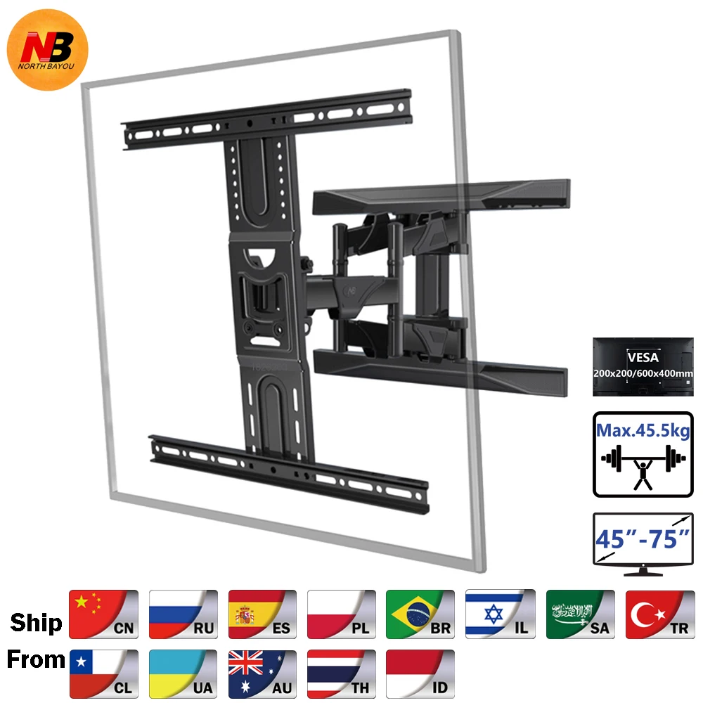 Comprar Soporte de pared para TV NB P6 de movimiento completo, pantalla LCD LED de Panel plano, carga máxima VESA de 600x400mm, 45,5 kg, 45-75 pulgadas, nuevo