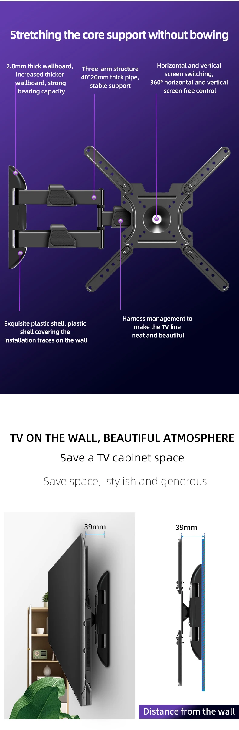 Comprar Soporte de pared de TV con pantalla de Plasma, brazos articulados de movimiento completo, Soporte de inclinación, Soporte de montaje en pared DY403, 32 "-58"