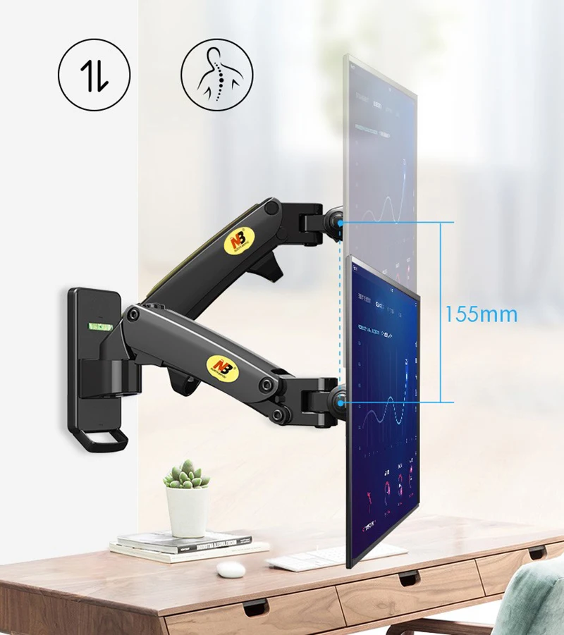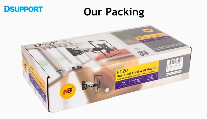 NB F120 17-27" Resorte de Gas Full Motion TV Montaje en pared Soporte para monitor LCD Soporte de brazo de aluminio