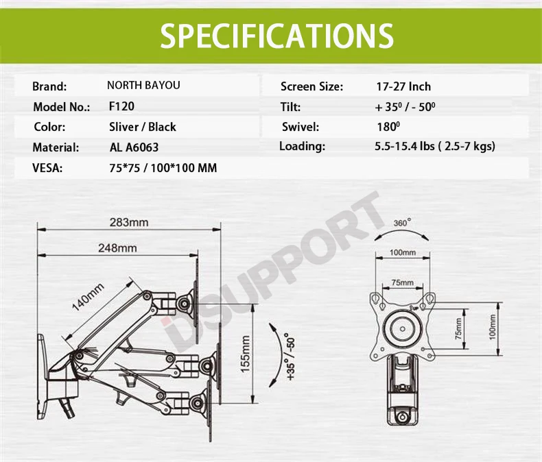 Comprar Soporte de pared para TV, resorte de Gas NB F120 para Monitor LED LCD de movimiento completo de 17-27 pulgadas, soporte de brazo de aluminio, carga máxima de 7 kg