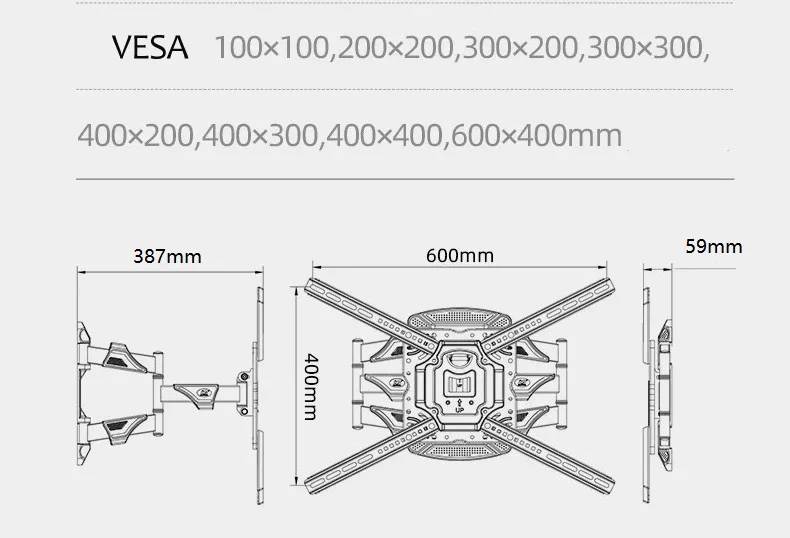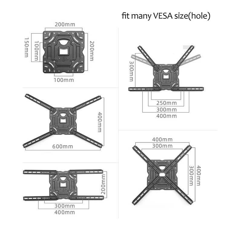- Nuestros accesorios estándar le permiten extender la distancia de montaje de TV VESA de 200*200mm a 400*400mm