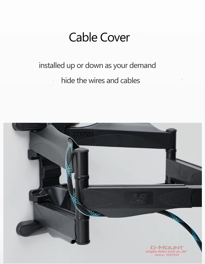 - La cubierta de la placa de pared y el sistema de cable oculto del soporte de TV se ven más lujosos y agradables, también hacen que el cable de TV detrás de su TV esté perfectamente ordenado.