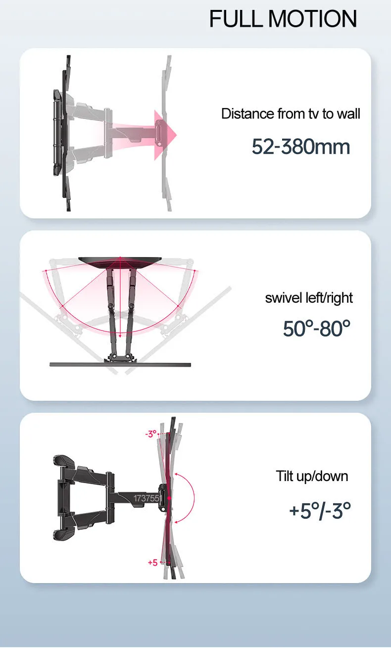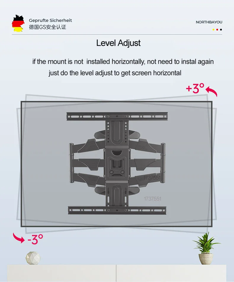- Con este soporte de TV de movimiento completo, puede ser fácil arreglar, inclinar, extender, plegar y girar su televisor y cualquier ángulo de visión que desee