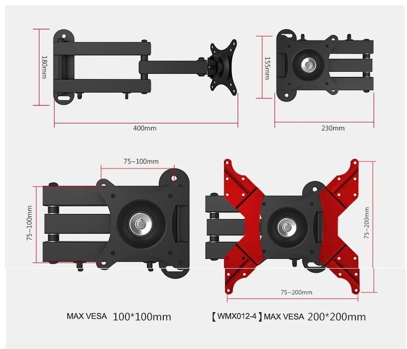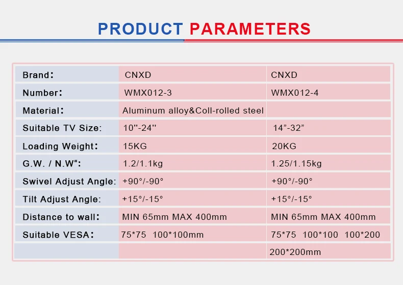 Tamaño de TV sugerido:10 ''-24'' -----14 "-32" ------WMX012-4
