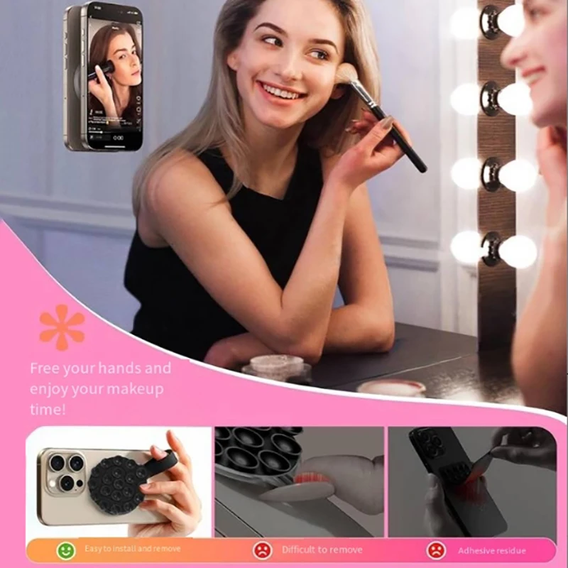 El soporte para teléfono móvil con ventosa es de tamaño pequeño, liviano, fácil de transportar, se puede guardar en un bolsillo o bolso y brinda a los usuarios soporte para teléfono móvil en cualquier momento y en cualquier lugar.