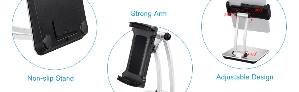 2. Este soporte para tableta se ajusta fácilmente, admite visualización vertical y horizontal.
