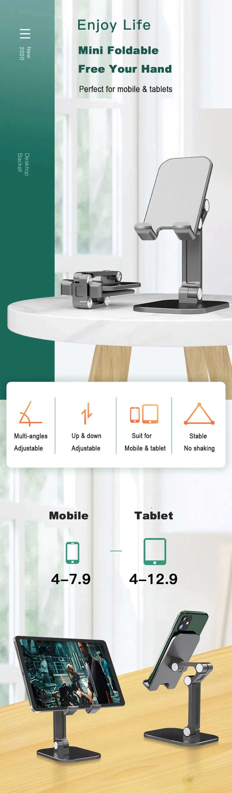 Comprar Soporte plegable de escritorio para teléfono móvil, base Flexible de Metal para iPhone 13 12 iPad Tablet