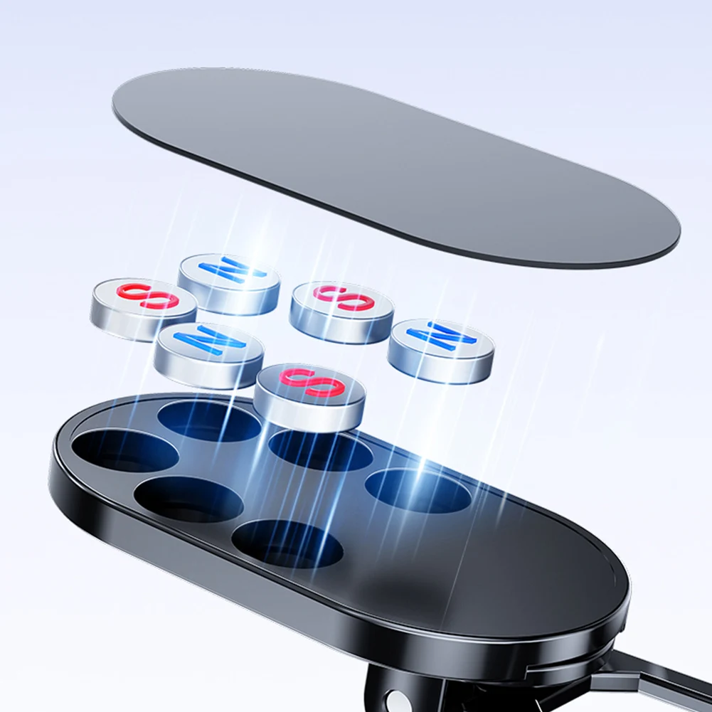 4. Imanes fuertes incorporados:Equipado con seis potentes imanes N52, el soporte para teléfono para automóvil garantiza una fuerte absorción magnética, manteniendo su teléfono en su lugar de forma segura durante la conducción.