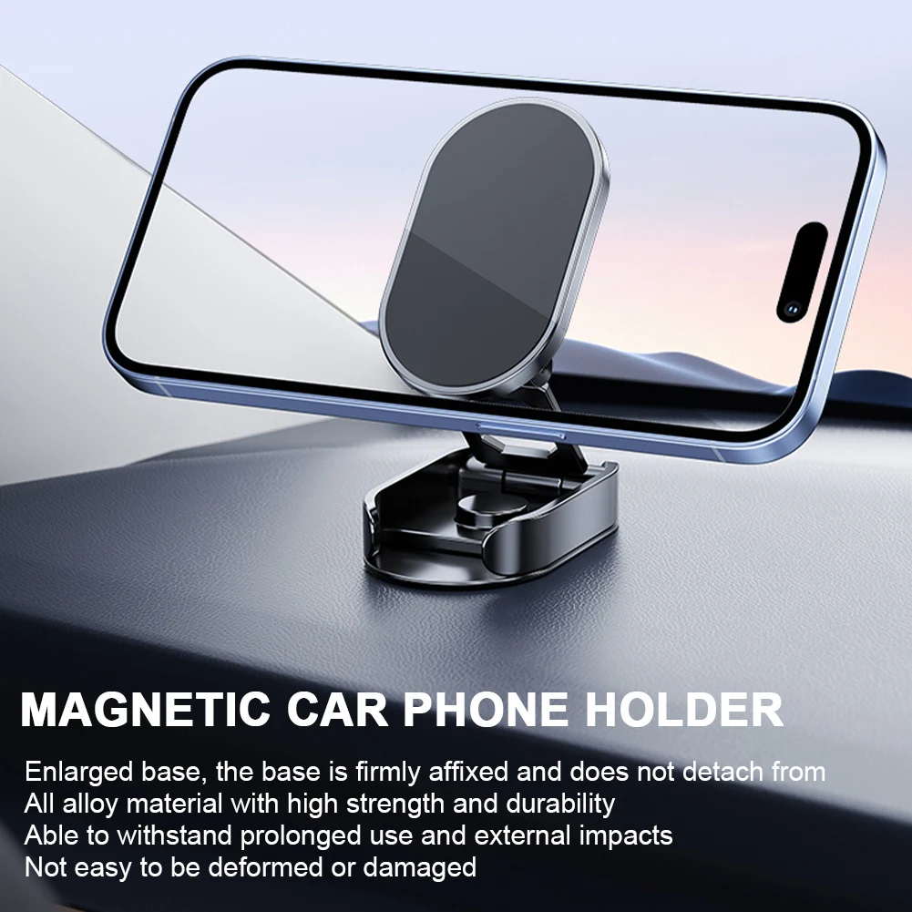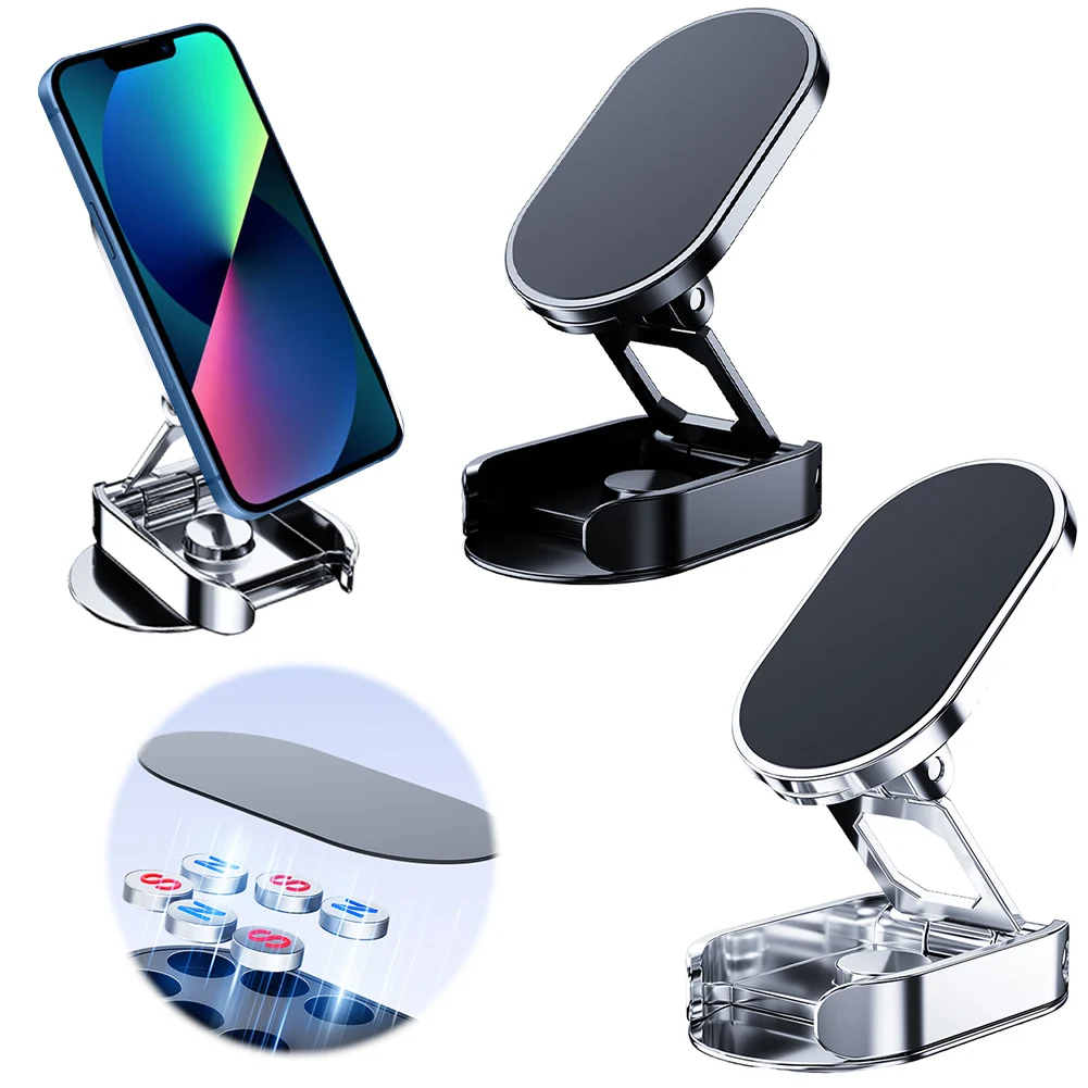 Soporte magnético plegable para teléfono móvil 720° Soporte giratorio plegable para navegación de coche, soporte móvil para teléfono inteligente para salpicadero de coche