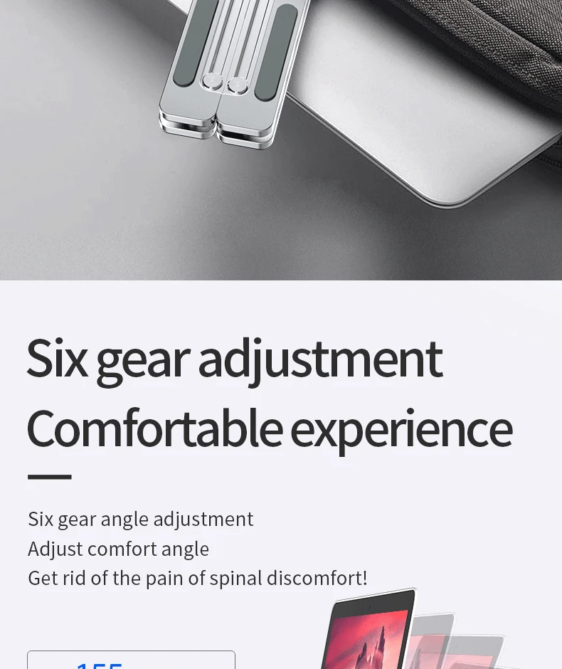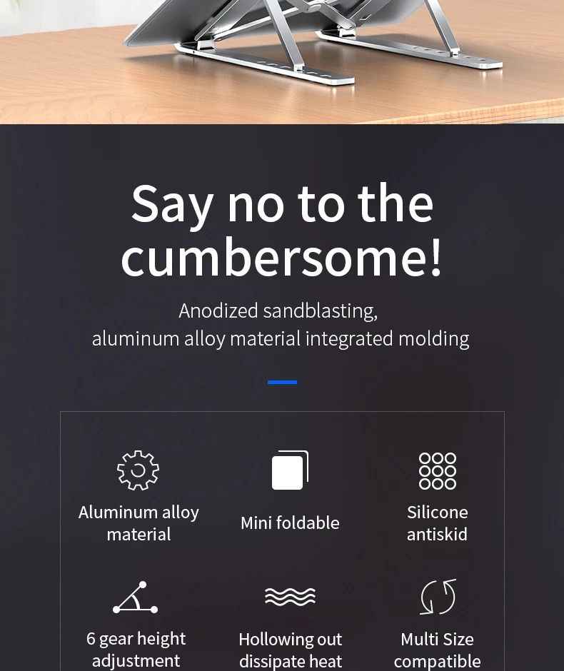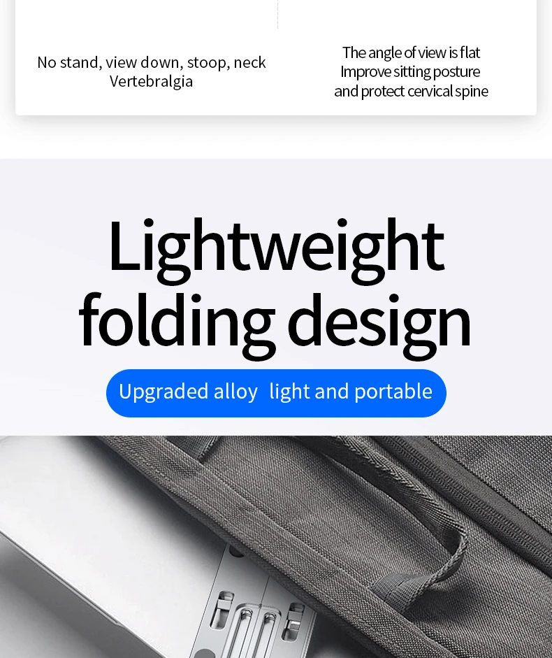 【Material de aleación de aluminio 】el soporte para portátil está hecho de aleación de aluminio y silicona antideslizante, que es muy fuerte y duradero, y se hará cargo de tu ordenador portátil.