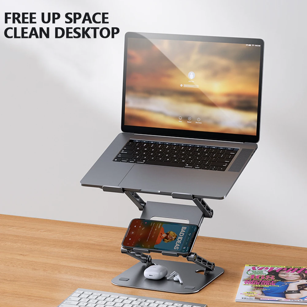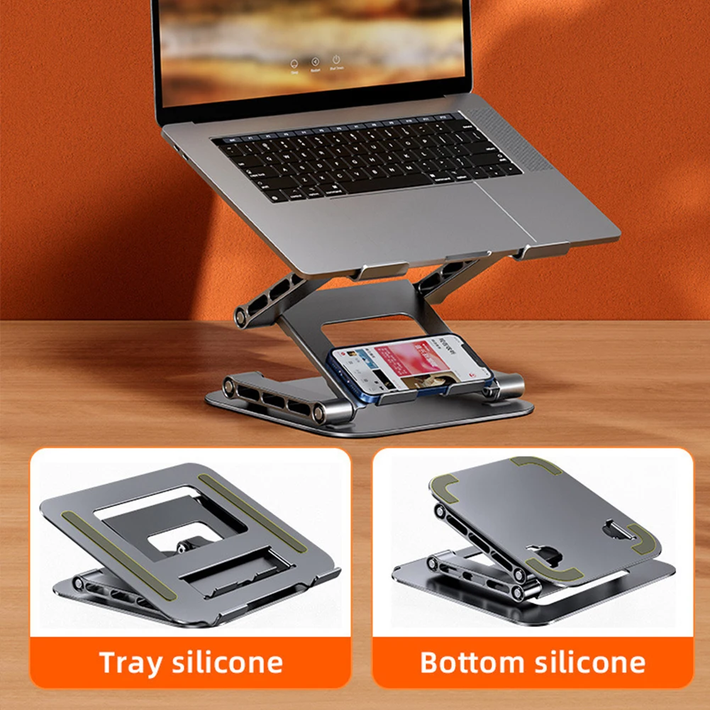 Soporte para portátil de 3 capas, soporte para tableta de teléfono plegable ajustable 360, soporte antideslizante de aleación de aluminio para portátil de 11-17 pulgadas
