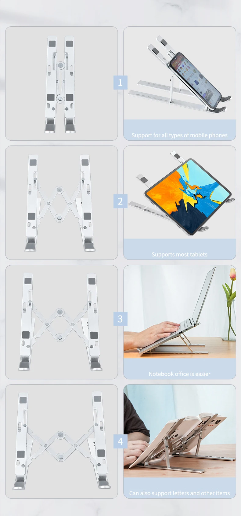 Soporte plegable para portátil, soporte ajustable para portátil, tableta, teléfono, MacBook Air Pro