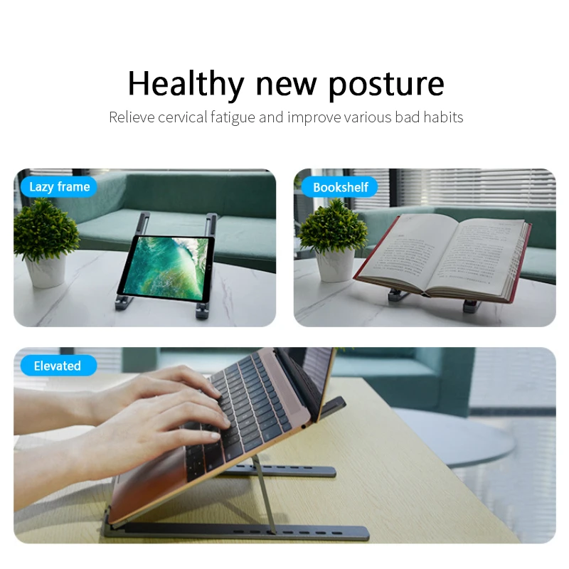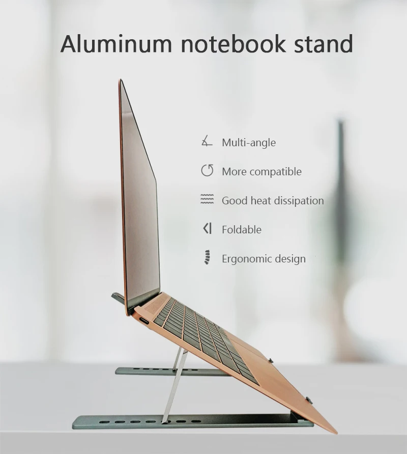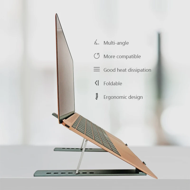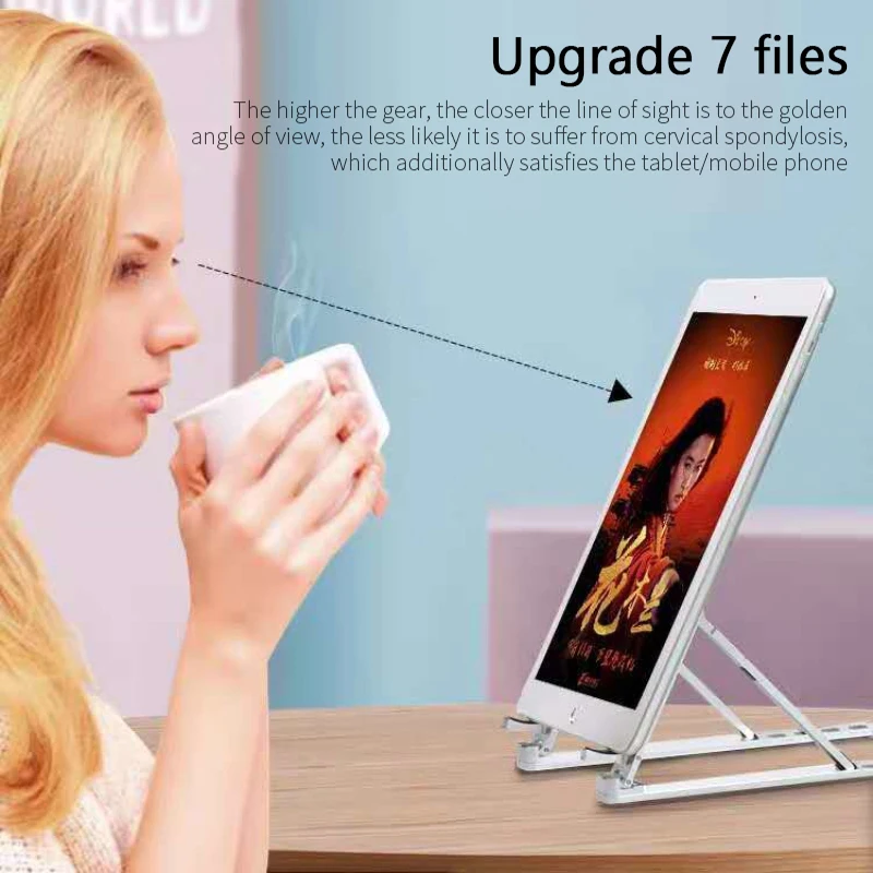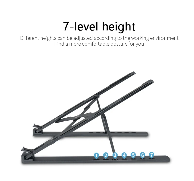 Comprar Soporte plegable portátil de aleación de aluminio, ajustable, ajuste de altura de 7 velocidades, disipación de calor de fondo hueco, soporte de escritorio