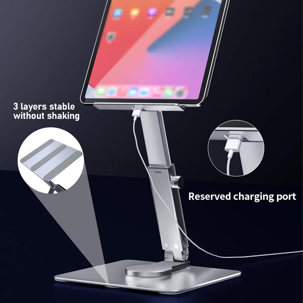 Material resistente: el soporte para tabletas está hecho de aleación de aluminio, con estructura estable, que es duradera y de uso a largo plazo.Ampliamente utilizado: el soporte plegable de escritorio es adecuado para tabletas y teléfonos inteligentes de 3,5-13 pulgadas, lo cual es muy práctico.Portátil: el soporte para tableta es de tamaño pequeño y ligero, y se puede plegar para una fácil portabilidad y no ocupa espacio.Rotación: la base del soporte del teléfono inteligente de escritorio se puede girar 360 °, lo cual es conveniente para usar desde diferentes ángulos.Ajuste multiángulo: el soporte del teléfono es ajustable de 0 a 120 °, y la altura máxima del diseño retráctil es de 35 cm/13,78 pulgadas.