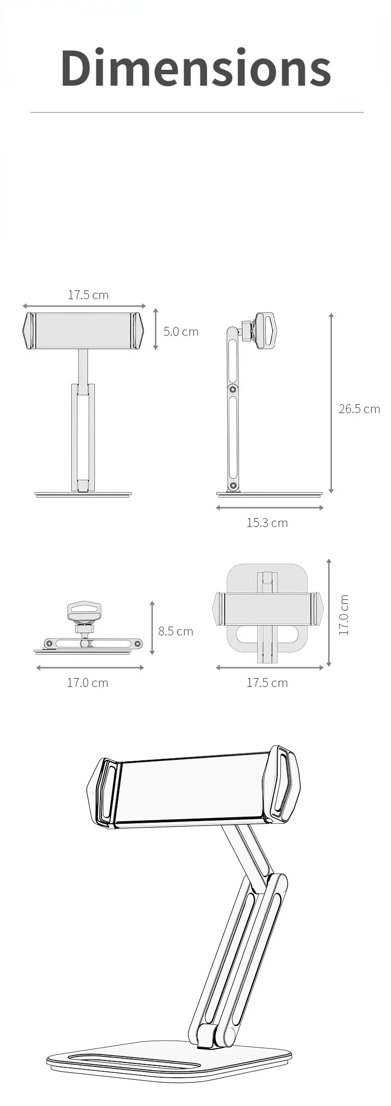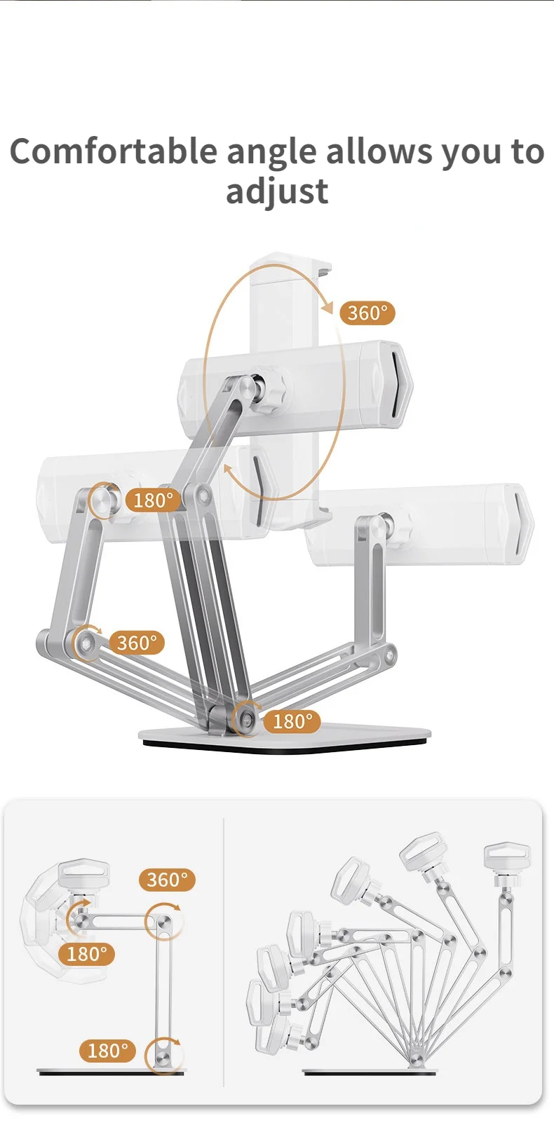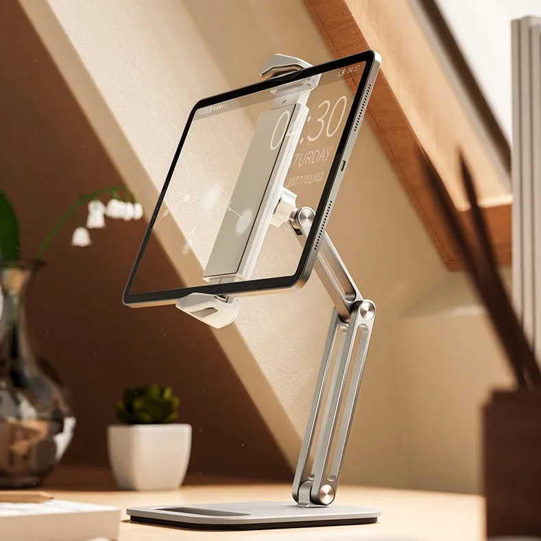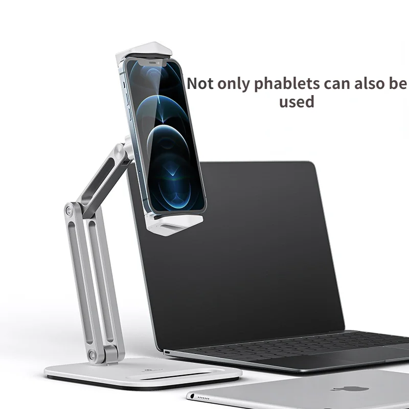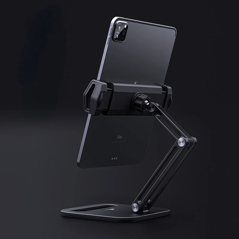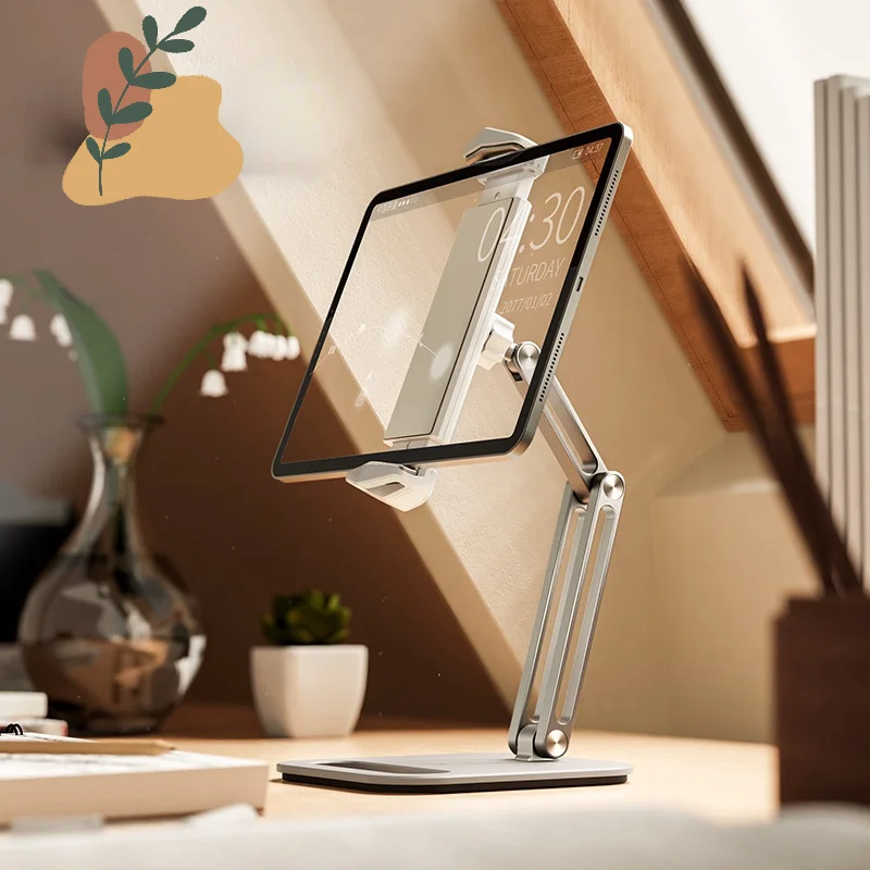Soporte plegable para tableta con diseño de tres ejes, multiángulo ajustable, soporte para tableta de escritorio, soporte de aluminio para teléfono móvil con manos libres