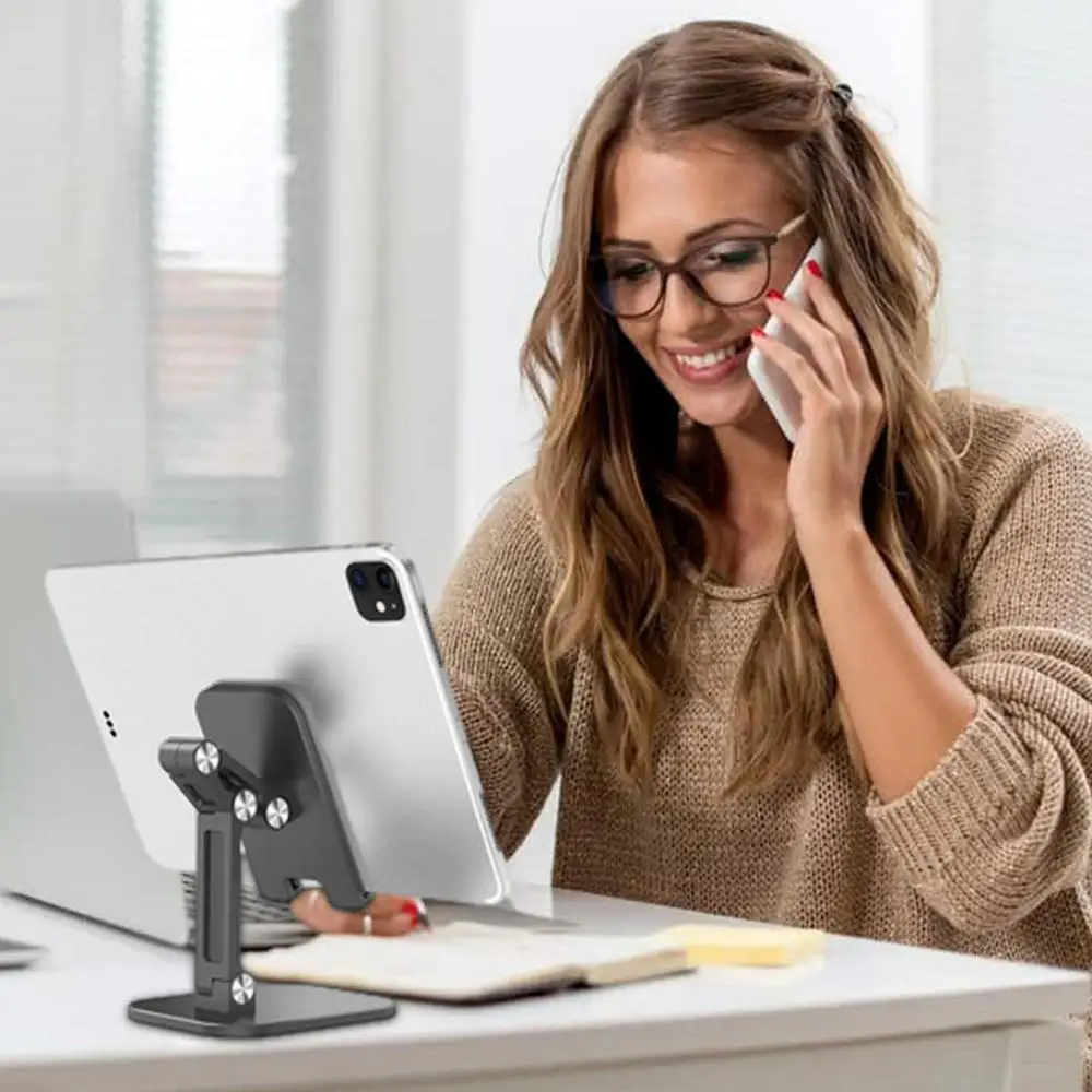 Nuestro soporte para teléfono móvil es el accesorio perfecto para sus dispositivos. Puede contener tabletas de 4-12,9 pulgadas y teléfonos de 4-7,5 pulgadas, y satisfacer sus diferentes necesidades. Puede ajustar fácilmente el ángulo y la altura del soporte de acuerdo con su cuerpo y escritorio. Nuestro soporte para teléfono móvil está hecho de materiales ABS de alta resistencia que son duraderos y resistentes. Es ampliamente utilizado en hogares, oficinas, escuelas y otros lugares.