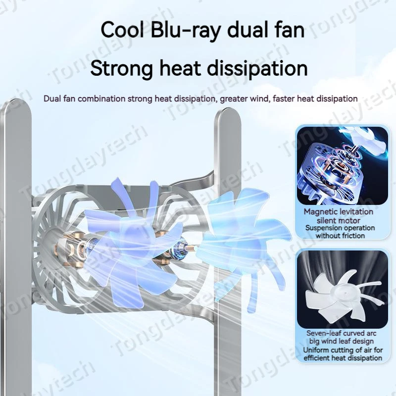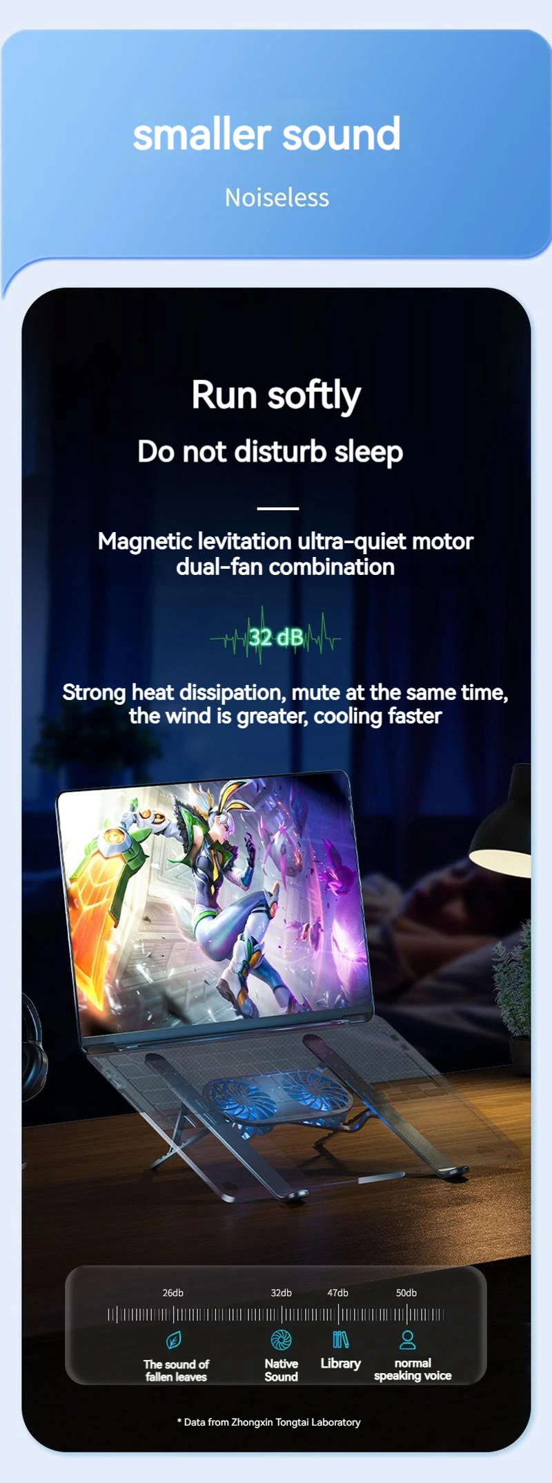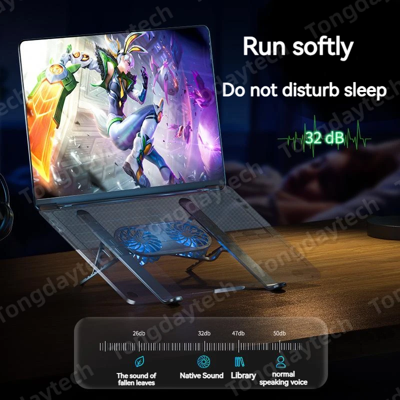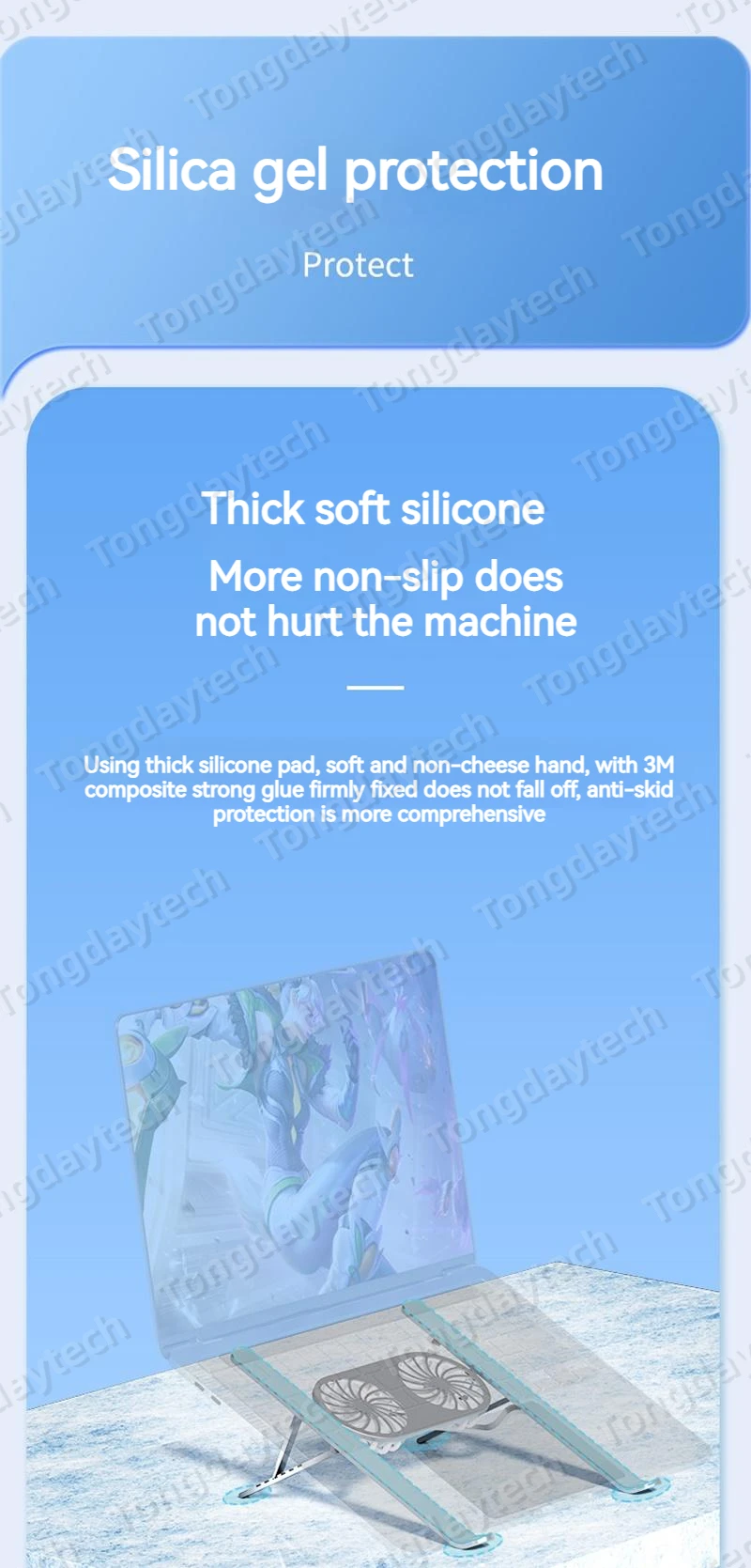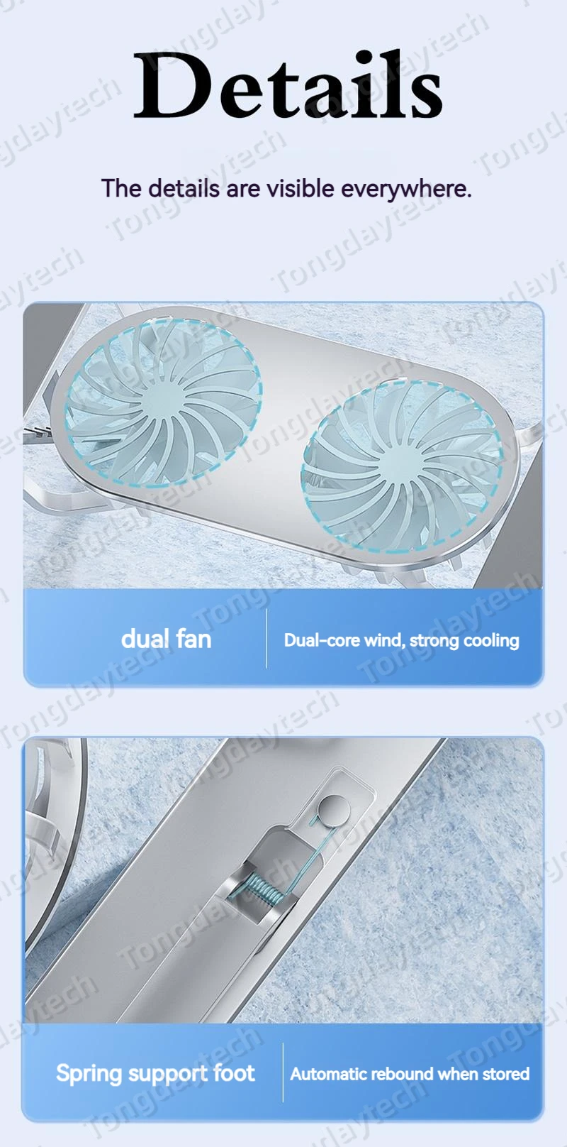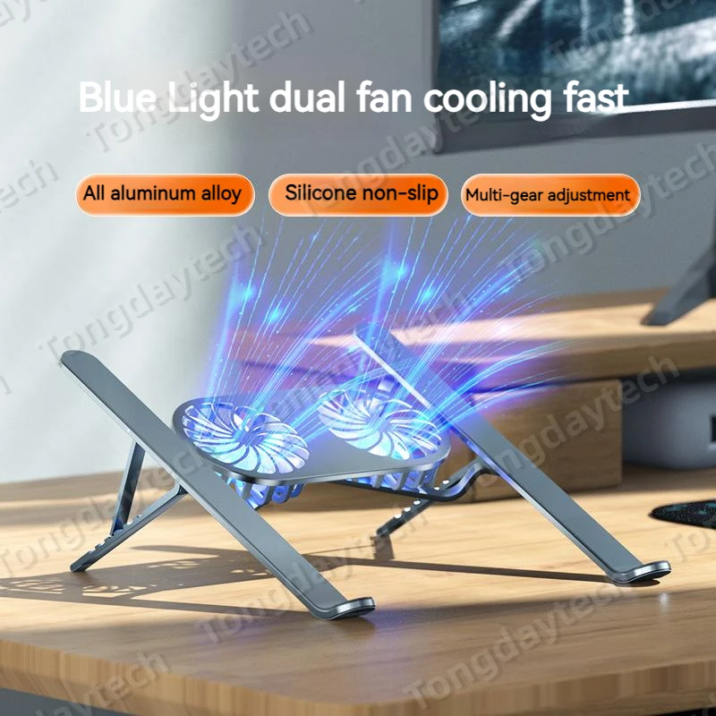 Soporte portátil de aluminio para portátil, ángulo ajustable, ventilador de refrigeración de luz azul, soporte plegable para tableta, Notebook, Macbook, iPad Air Pro