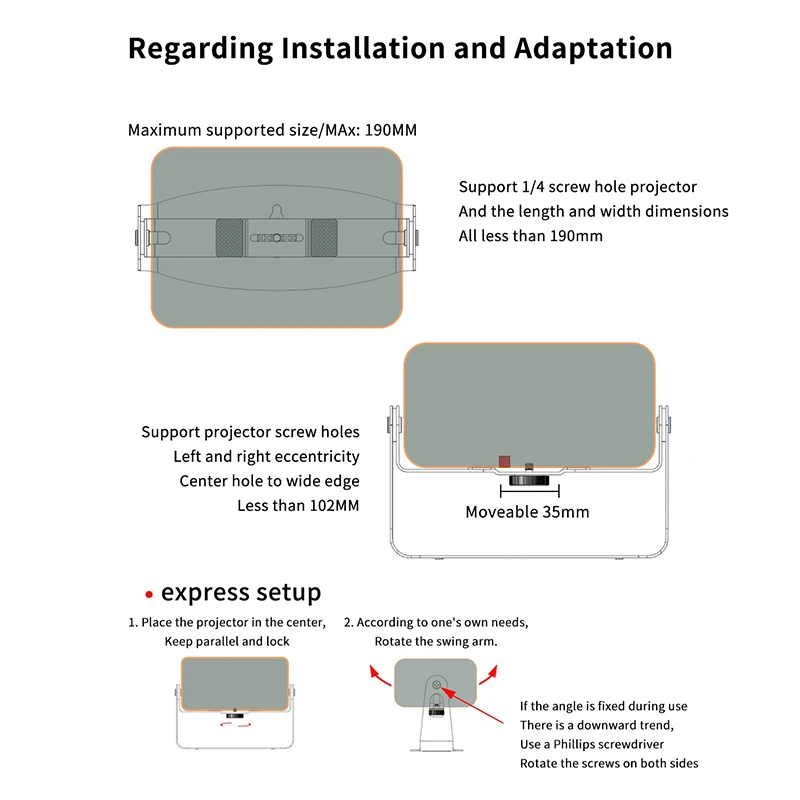 2.Universal: El soporte es ampliamente compatible, no solo para proyectores DLP de marcas como Xiaomi, XGIMI y JMGO, sino también para proyectores de marcas.