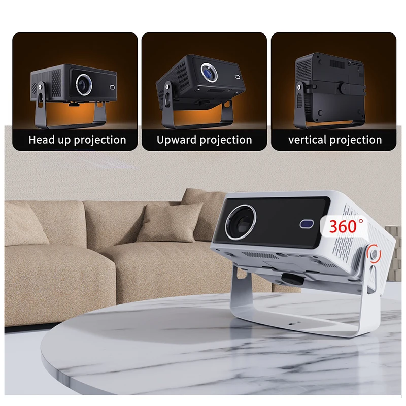 4.Fácil ajuste: el ángulo del soporte se puede ajustar, de modo que la imagen proyectada se pueda ajustar libremente a la mejor posición de visualización en diversos entornos.