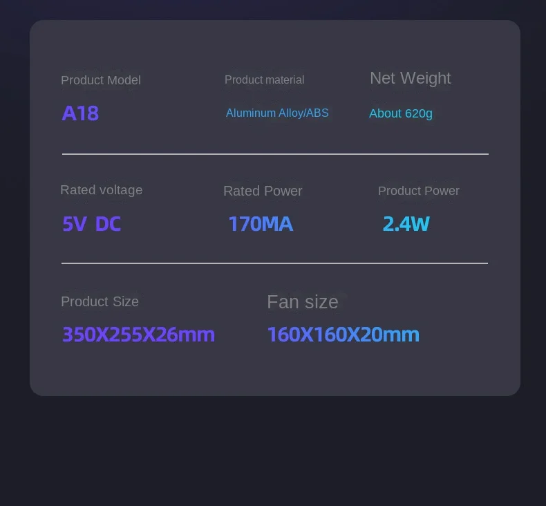 Soporte de radiador súper silencioso de aleación de aluminio de alta potencia, ventilador de refrigeración para juegos, soporte para enfriador de portátiles, A18