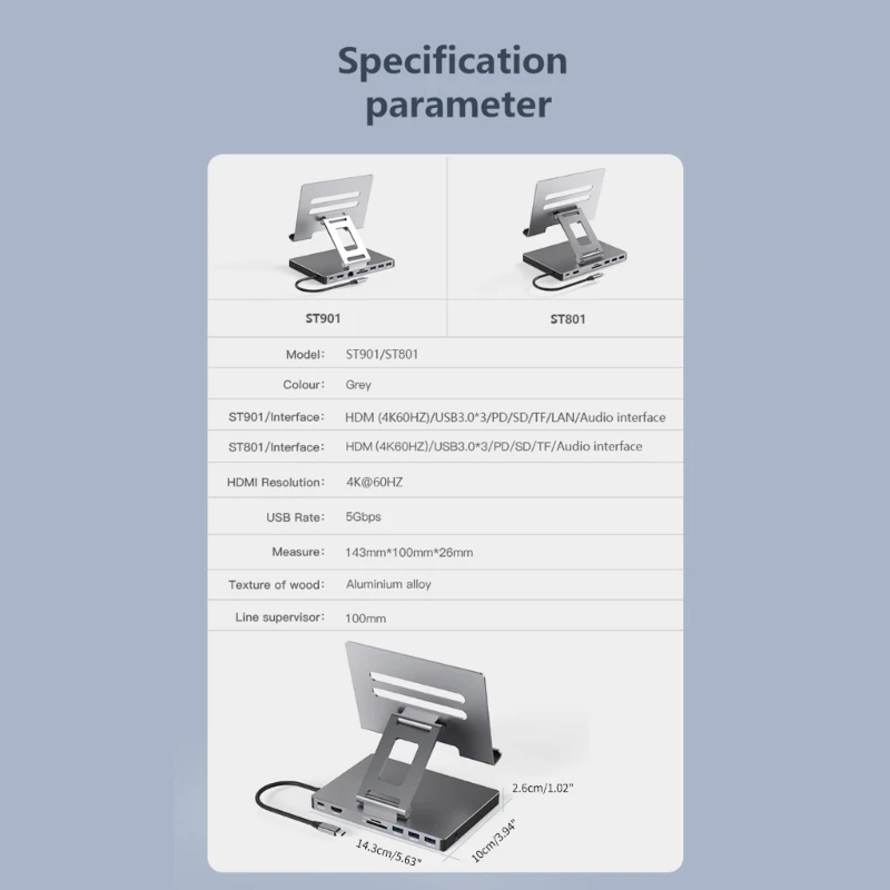 Características:OotdtySu productividad con esta estación de acoplamiento de aleación de aluminio 9 en 1 / 8 en 1 para dispositivos tipo C.