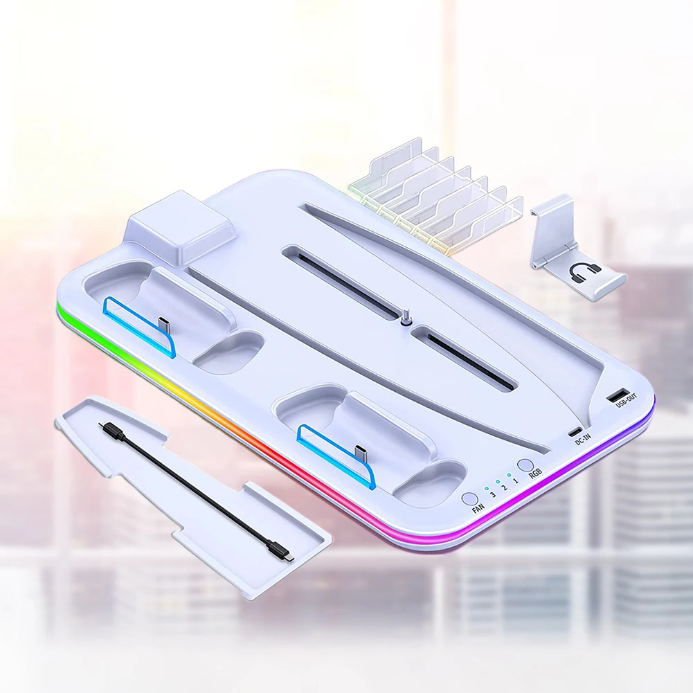 Comprar Soporte de refrigeración Vertical para PS VR2 PS5, cargador de controlador con ventilador de refrigeración RGB para consola SONY Playstation 5 Digital/Disc Edition