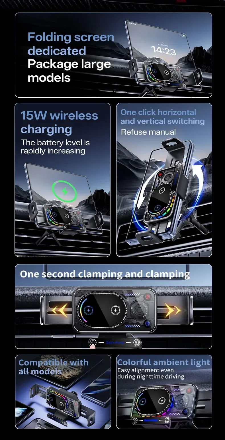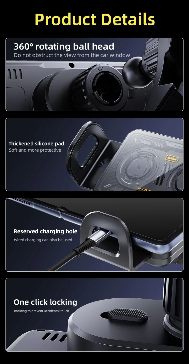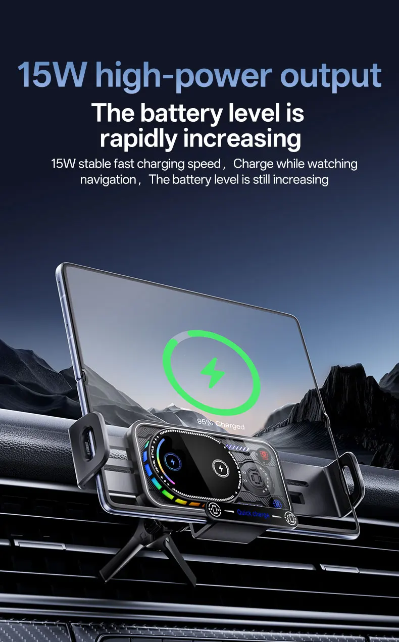 1.El soporte para automóvil de carga inalámbrica rápida, la navegación con abrazadera y la carga inalámbrica al mismo tiempo le brindan una experiencia de conducción segura y conveniente.