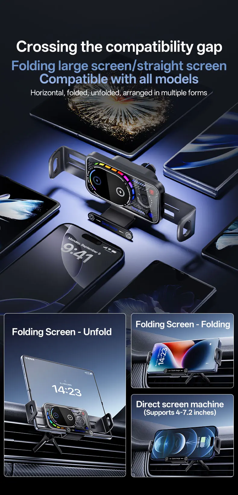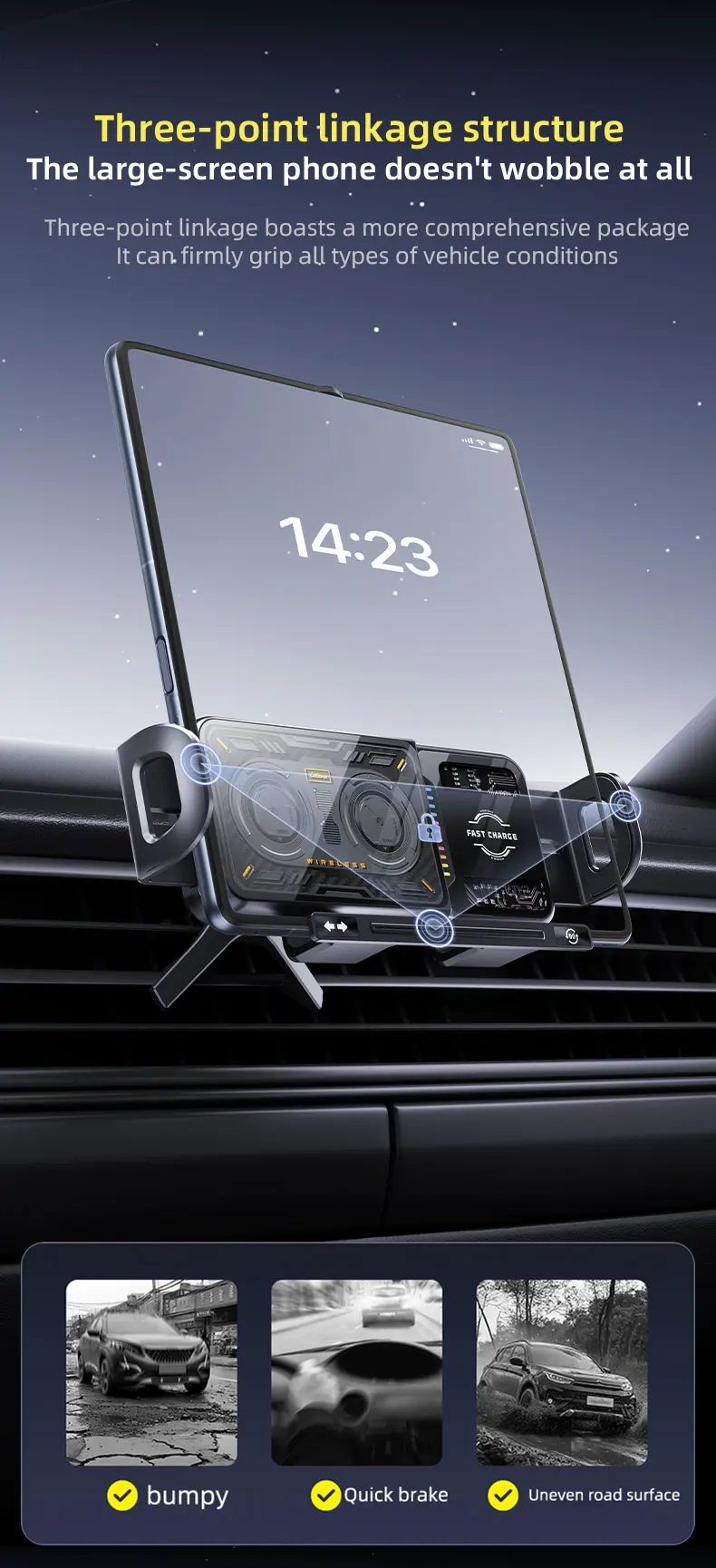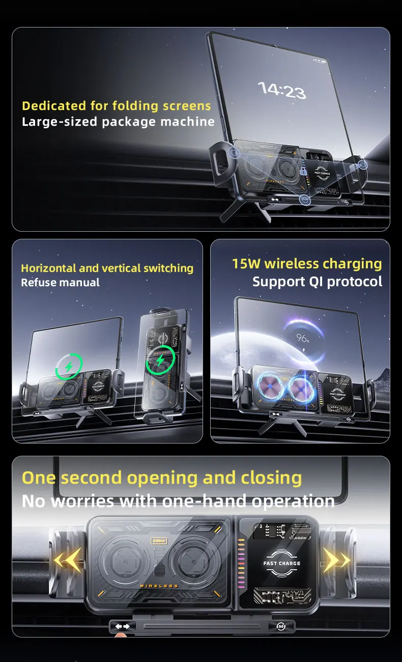 1.El soporte para automóvil de carga inalámbrica rápida, la navegación con abrazadera y la carga inalámbrica al mismo tiempo le brindan una experiencia de conducción segura y conveniente.