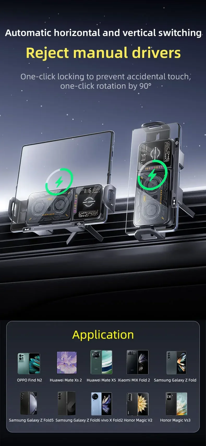 2.Diseño de bobinas dobles, la bobina izquierda es especial para Samsung Galaxy Flip, la bobina intermedia es para el uso del teléfono celular recto normal y horizontal.