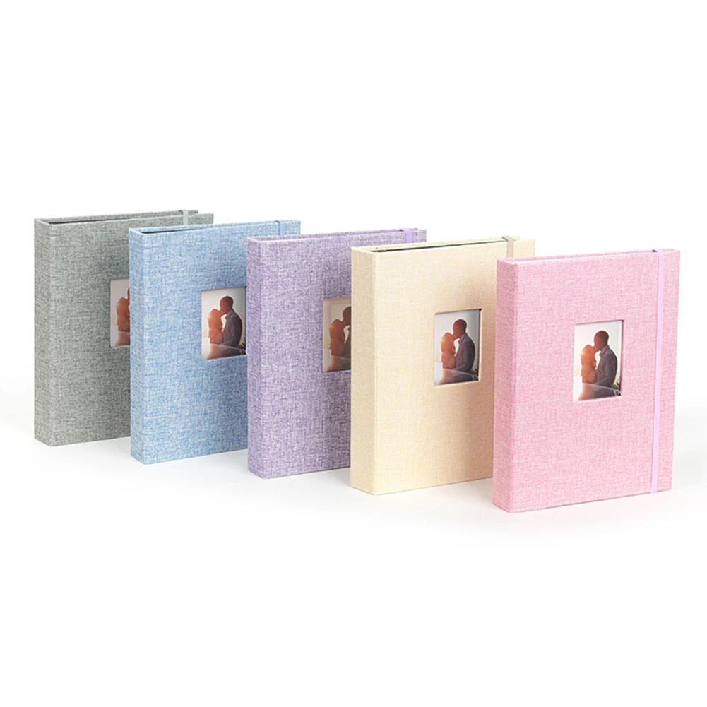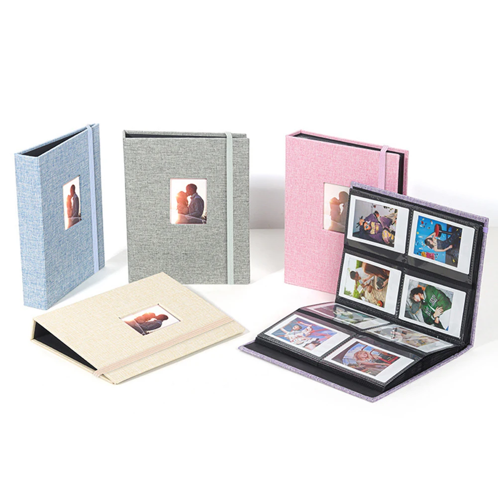 Álbum de fotos de 3 pulgadas, libro de algodón, cáñamo, 208 bolsillos, almacenamiento de imágenes, soporte para tarjetas fotográficas, diseño de correa impermeable para tarjetas de visita fotográficas