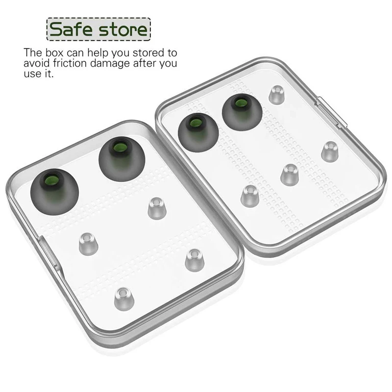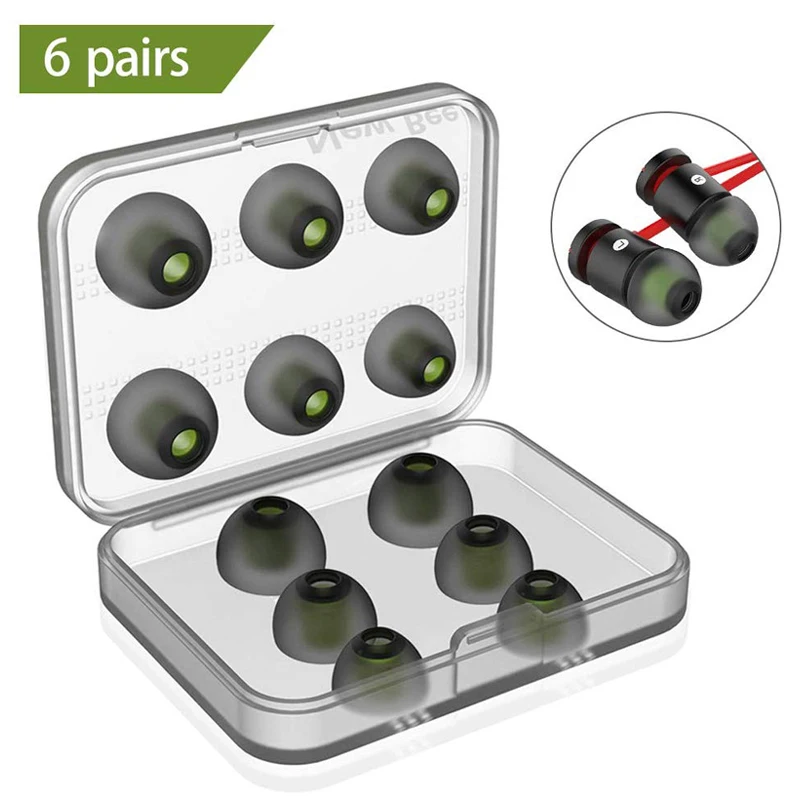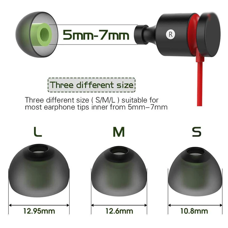 Estos auriculares son compatibles con Bose, Jays, Sony, RHA, Philips,AKG, Audio-Technica, Skullcandy, Sennheiser, Plantronics, Phillips, Panasonic. Estos son un buen reemplazo para el original cuando el original está roto o perdido, con estos productos, No tienes que preocuparte por el daño o la pérdida de tus almohadillas originales, y te dará más copias de seguridad. Hecho de silicona suave, muy elástico, fuerte y duradero, cómodo para tus oídos. Lavable con agua, reutilizable, duradero, flexible, antiestático, extraíble y reemplazable. Reemplazo Ideal para cualquier daño. Elimina la fatiga del canal auditivo experimentada por largos y proporciona una experiencia de sonido mucho mejor Reemplazo Ideal para cualquier Punta de silicona de auricular dañada, rayada, defectuosa o perdida, dale nueva vida a tus auriculares in ear Especificaciones: Color: verde y negro Material: silicona Tamaño: tres tamaños diferentes (S/M/L) incluyen traje para la mayoría de las puntas de los auriculares interiores de 5mm-7mm cómodo para sus oídos. 3 tamaños diferentes que pueden satisfacer sus diferentes necesidades -2 pares de tamaño pequeño, OD es de 10,8mm, el diámetro interior es de 4,56mm -2 pares de tamaño mediano, OD es de 12,6mm, el diámetro interior es de 4,56mm -2 pares de tamaño grande, diámetro exterior de 12,95mm, diámetro interior de 4,56mm Nota: Este calibre de puntas de oído que se conectan a los auriculares es de 4,59mm, apto para auriculares de 5mm-7mm de diámetro que conectan el diámetro de la pieza. Compatible con Bose, Jays, Sony, RHA, Philips, Ultimate Ears como K-374,K-375,K-376,K370,K324P,K340,K330,Q250,K321,IP2,ATH-CKM300,ATH-CKM500, ATH-CKM1000,ATH-CKN50, ATH-CKN70,ATH-CKP200,ATH-CKP300,ATH-CKP300 (no incluye todos los modelos adecuados)