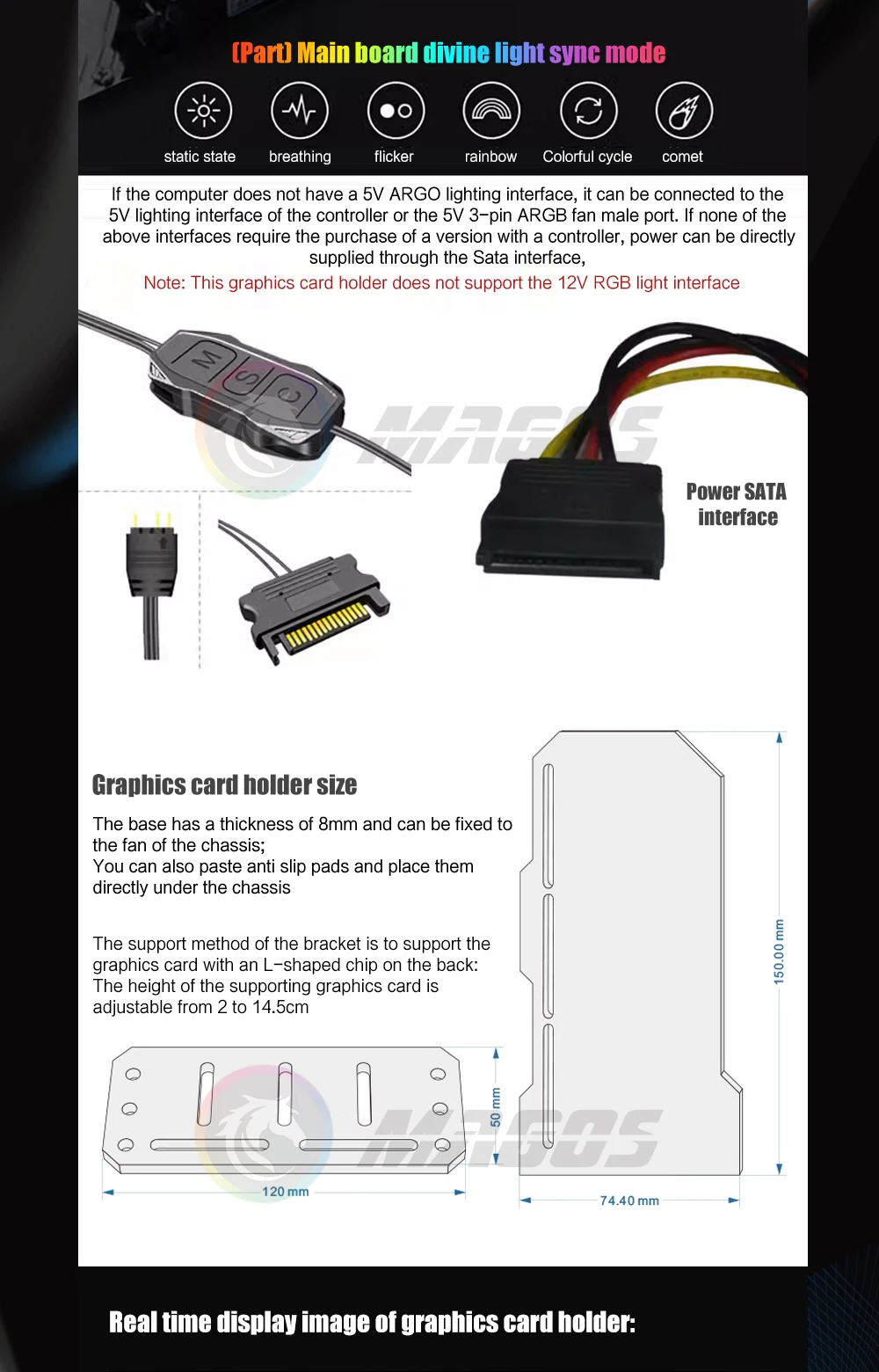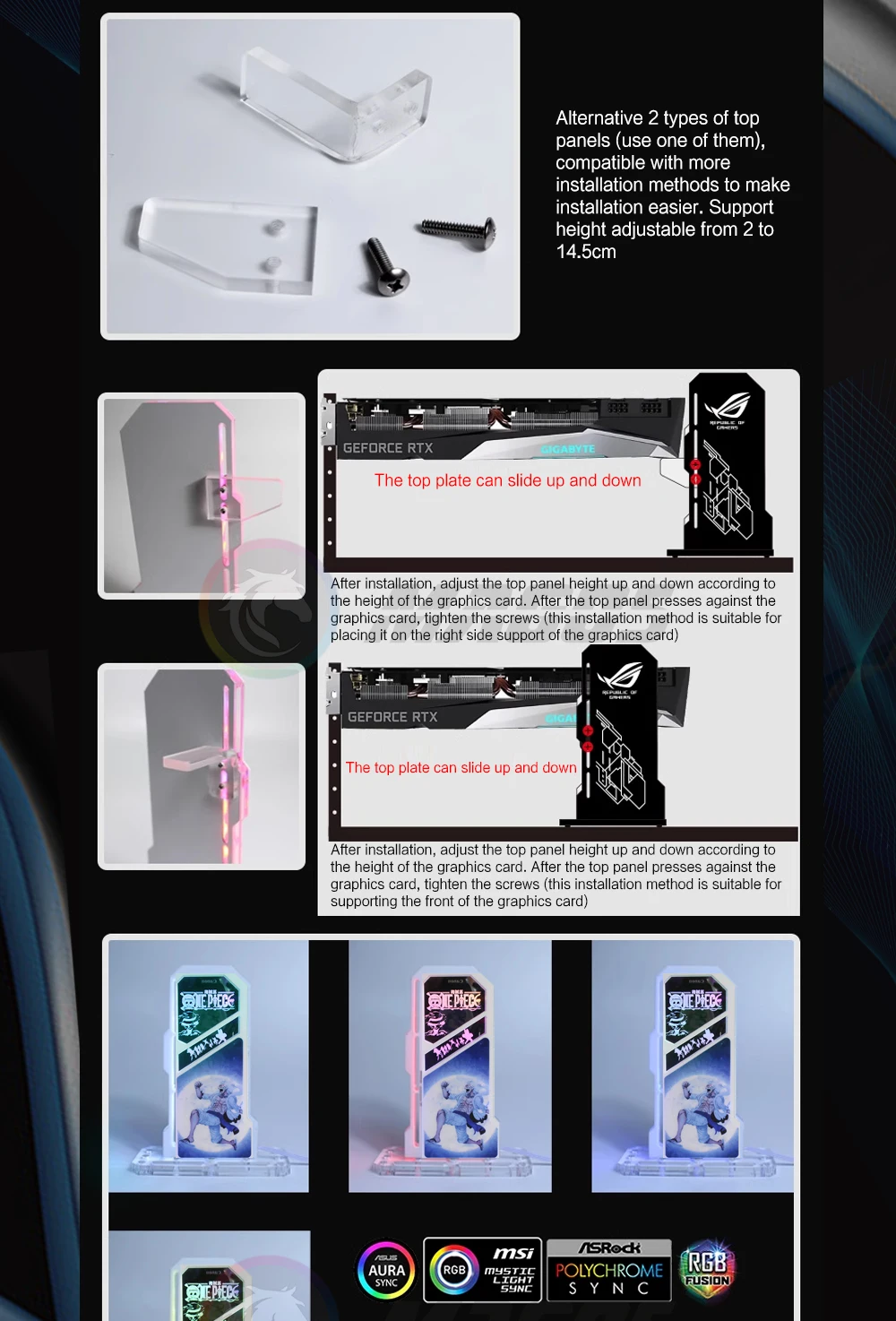 Comprar Soporte de soporte de GPU para evitar caídas, equipo de prevención de caída, diseño de espejo Vertical, opción de logotipos de cree de marca, sincronización AURA RGB de 5V