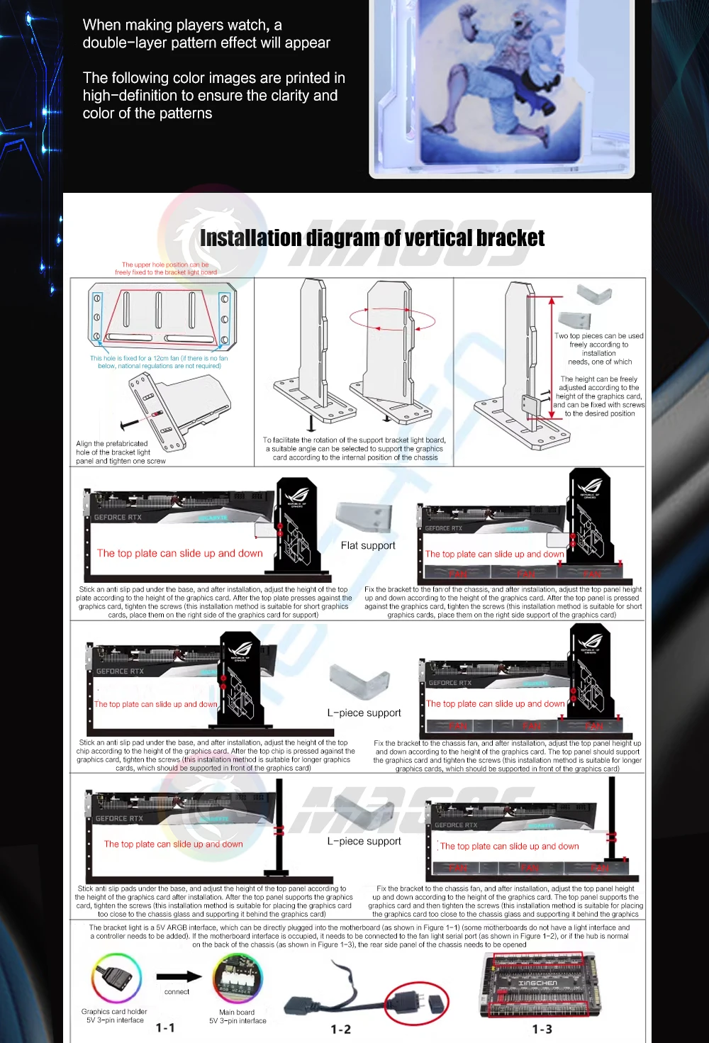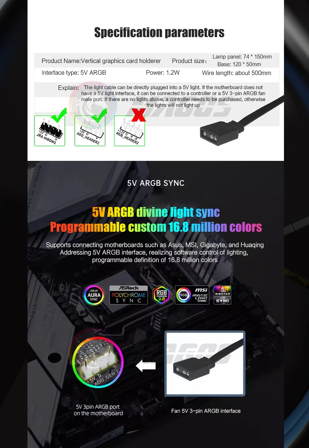 Soporte de soporte de GPU para evitar caídas, equipo de prevención de caída, diseño de espejo Vertical, opción de logotipos de cree de marca, sincronización AURA RGB de 5V
