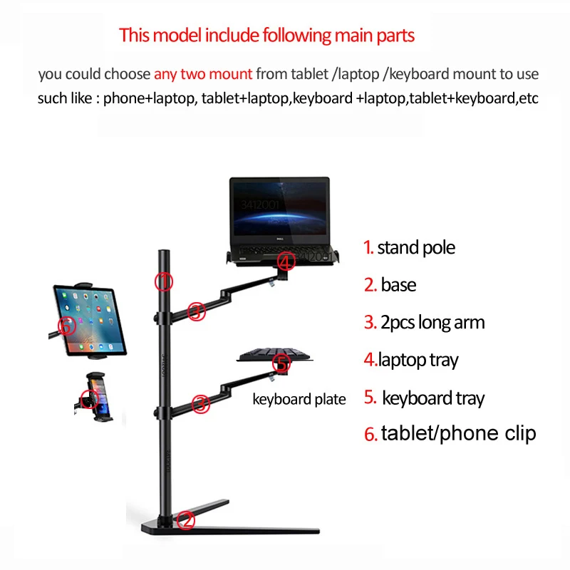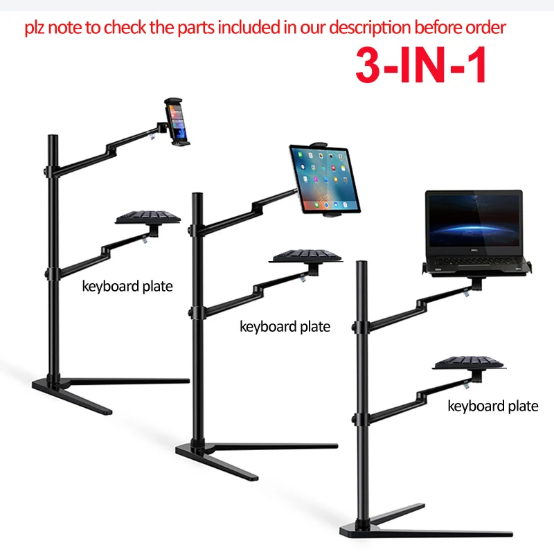 Comprar Soporte de suelo multifunción 3 en 1 para ordenador portátil, tableta, teléfono inteligente, altura/ángulo ajustable con bandeja para ratón, UP-88A