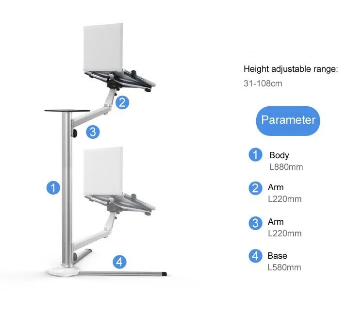 Soporte de suelo para ordenador 3 en 1 multifunción UP-8 para todos los portátiles/Tablet PC/soporte para teléfono inteligente altura/ángulo ajustable con bandeja para ratón