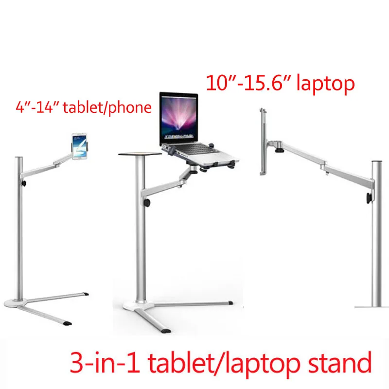 Comprar Soporte de suelo multifunción para ordenador UP-8 3 en 1 para todos los portátiles/tabletas PC/soporte para teléfono inteligente altura/ángulo ajustable con bandeja para ratón
