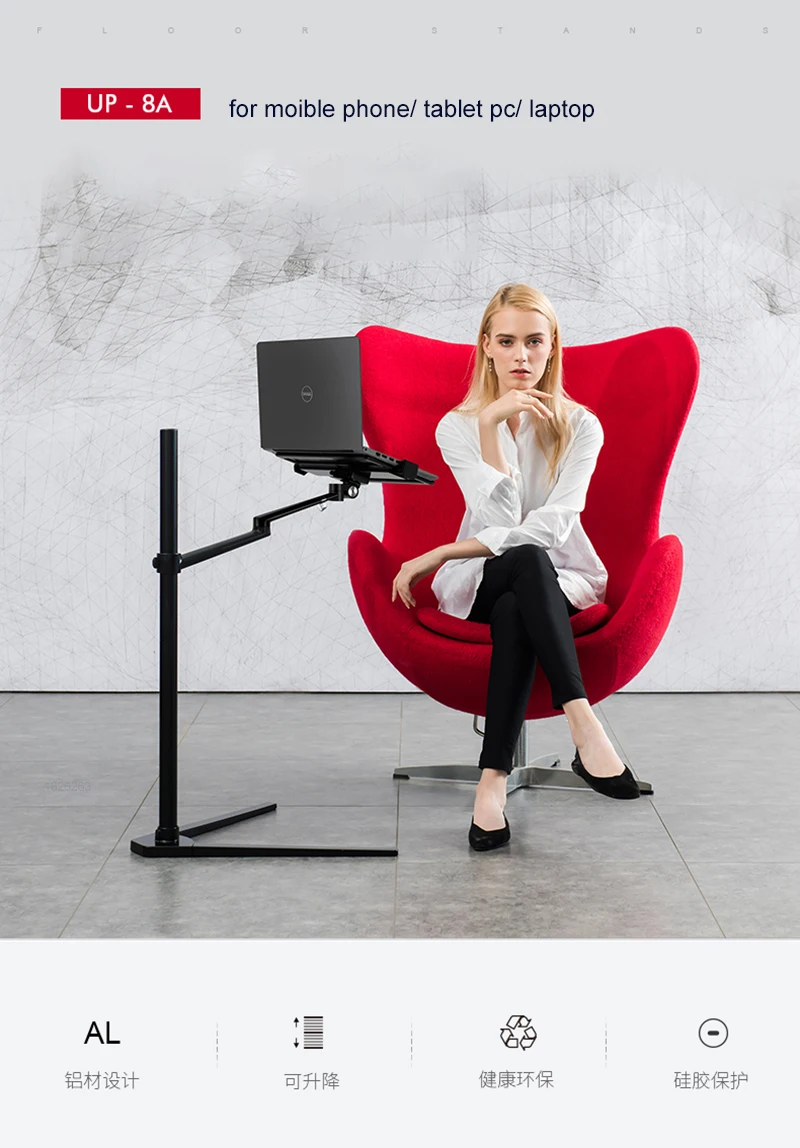 Soporte de suelo multifunción para ordenador UP-8A para todas las computadoras portátiles/tabletas PC/smartphone soporte ajuste de altura escritorio para ordenador portátil