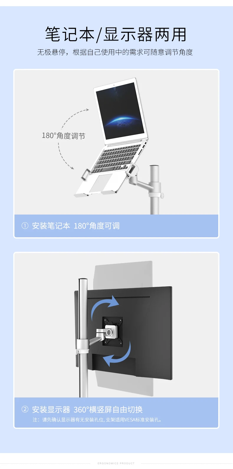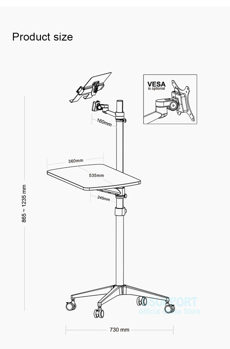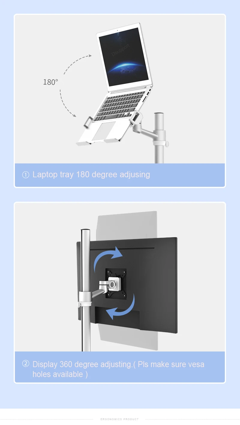 Comprar Soporte de suelo para ordenador portátil 2 en 1, ergonómico, UT-2, con movimiento completo, para Monitor, teclado, altura ajustable, escritorio móvil, hogar y oficina